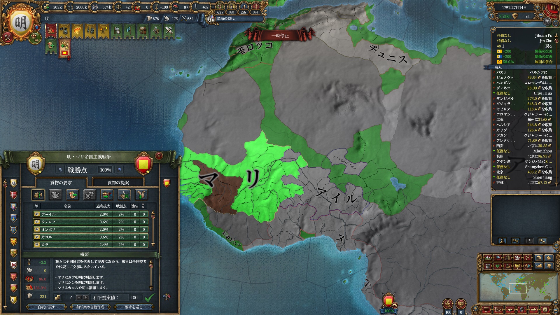アイル領からは属国カツィナを作成し、マリの方のいくらかはモロッコにOEを分散させています。