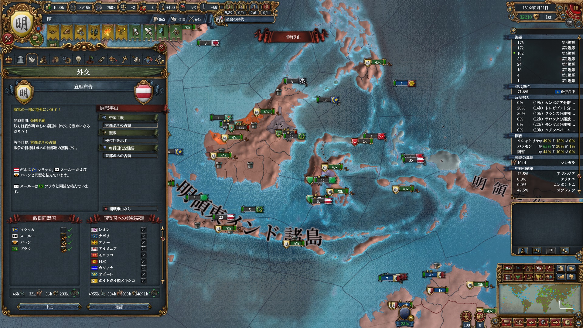 東南アジアも平定を急ぎます。特にスペイン隣接州はさっさと取ります。
