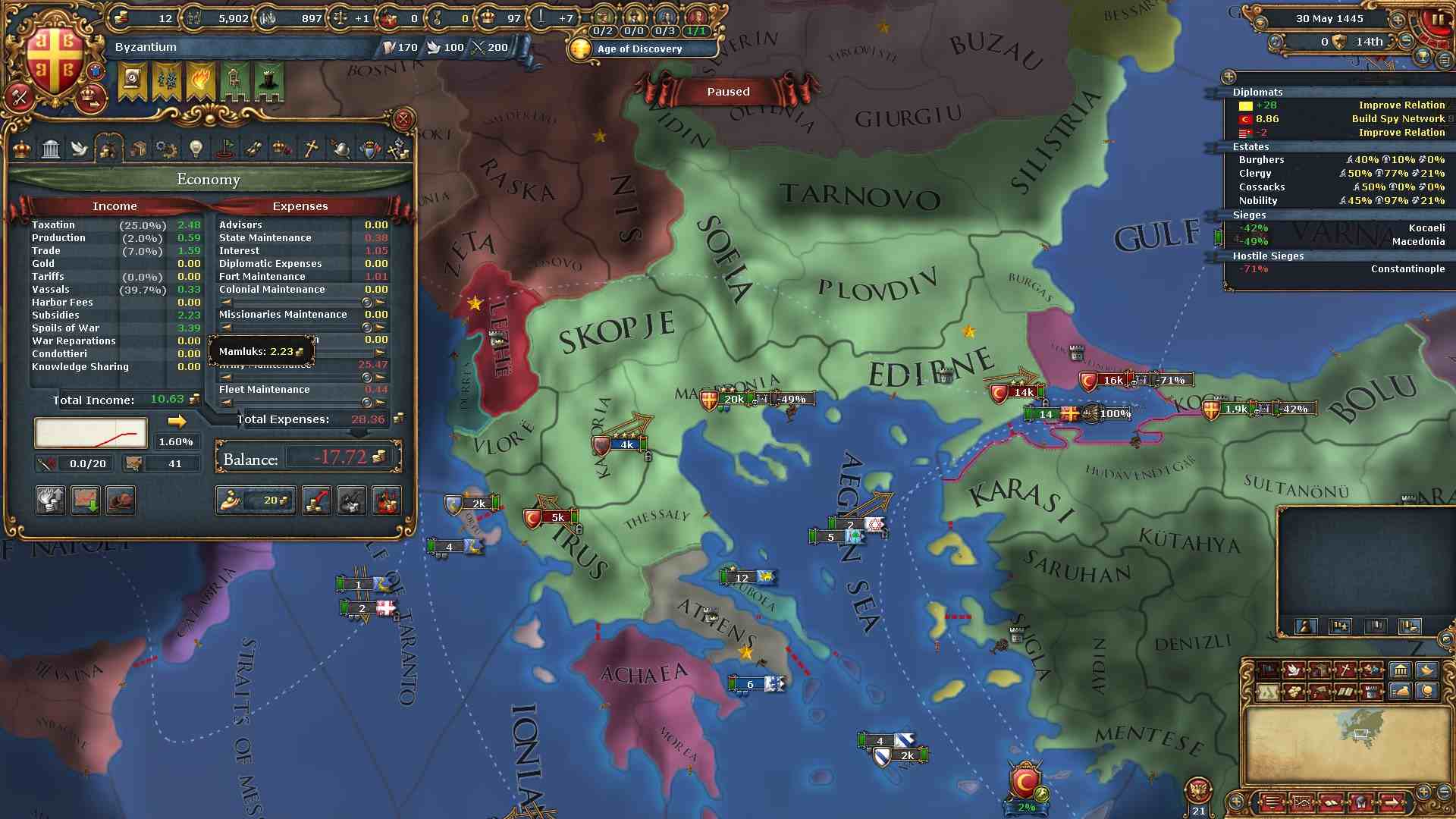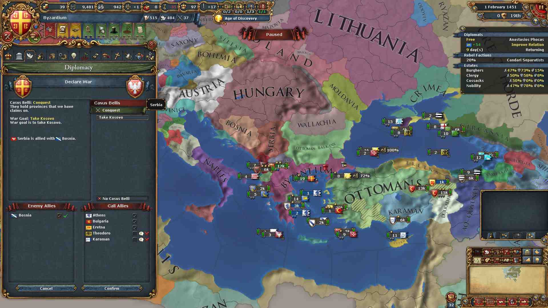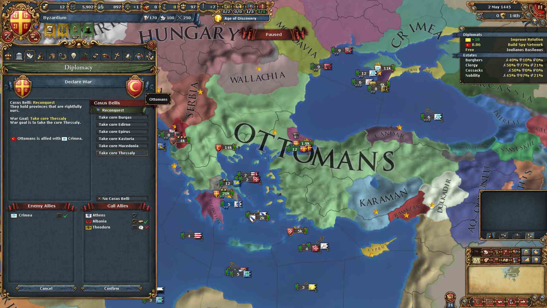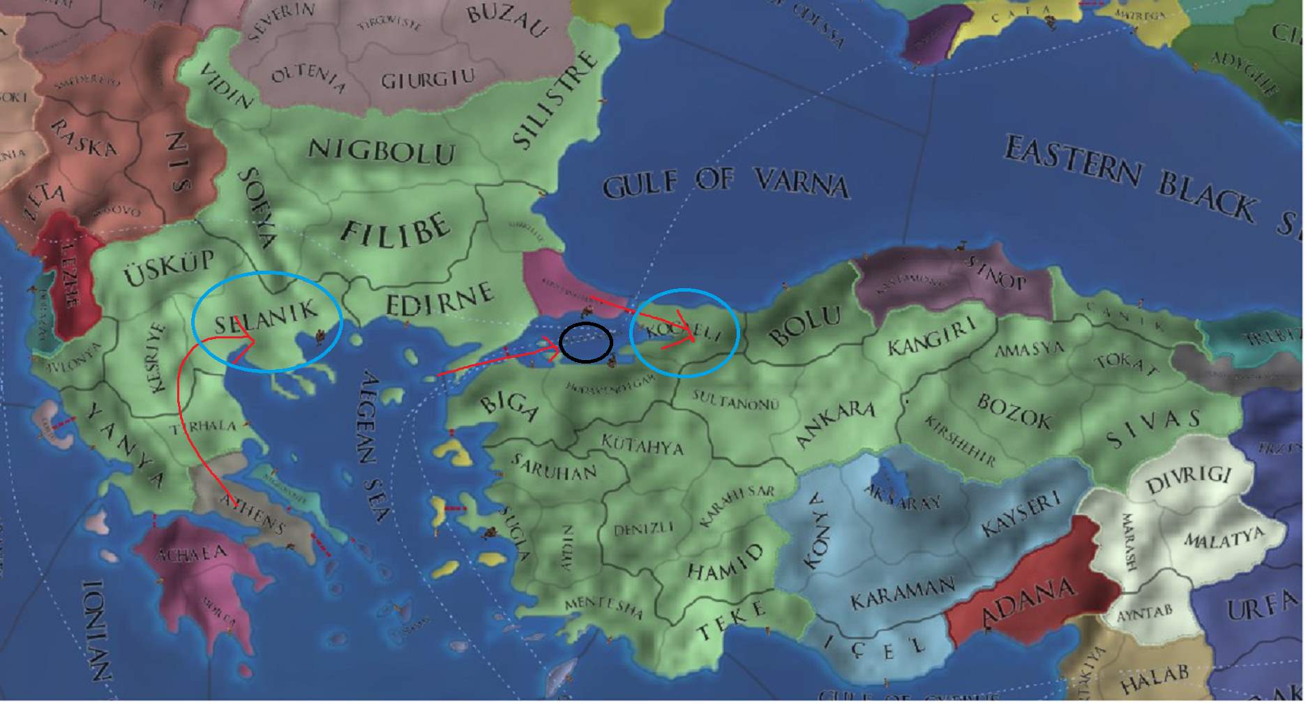 よって、ビザンツ・アルバニアの2国のみでオスマン及びその同盟国を打倒する方法を考える必要があります。