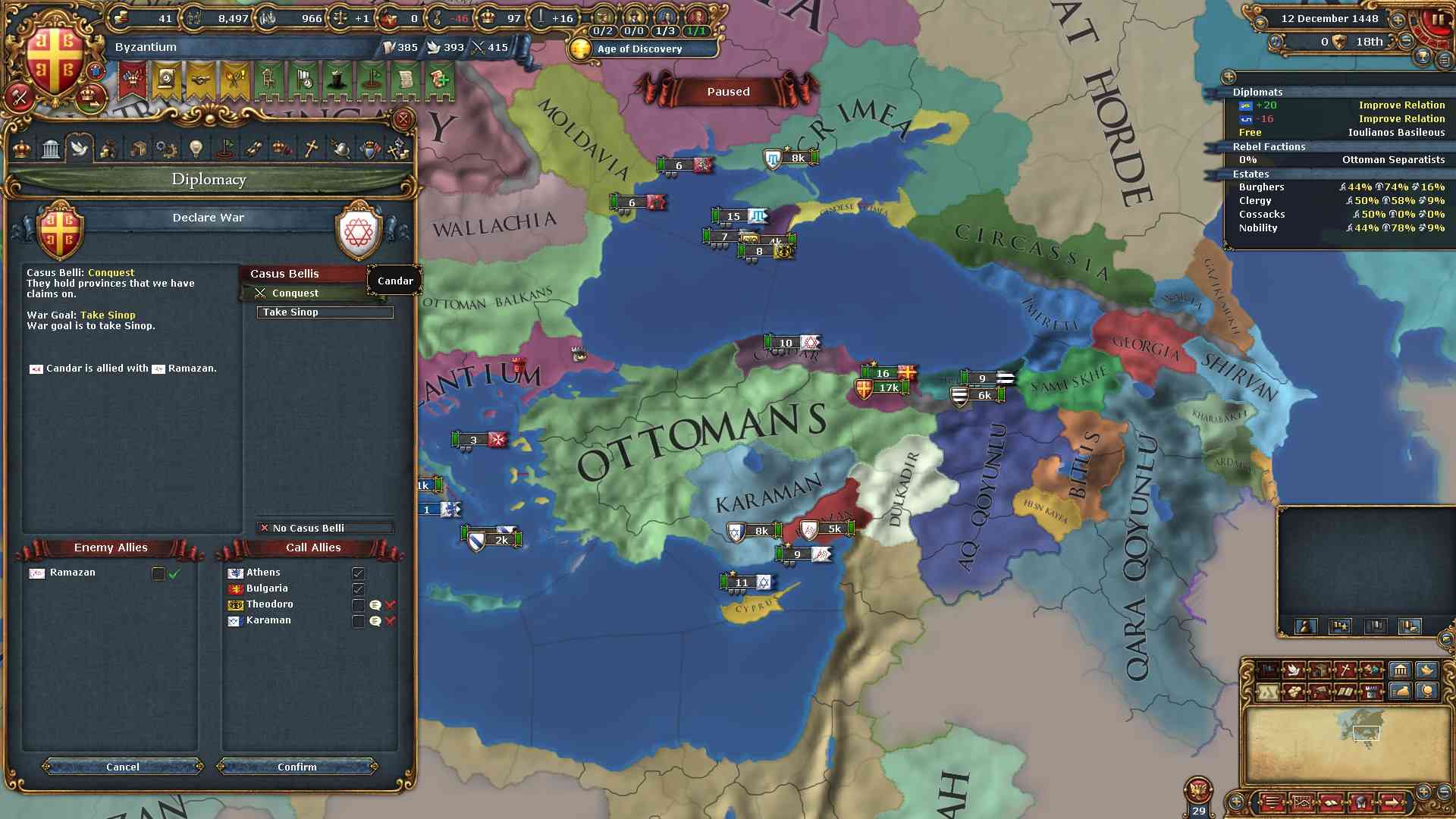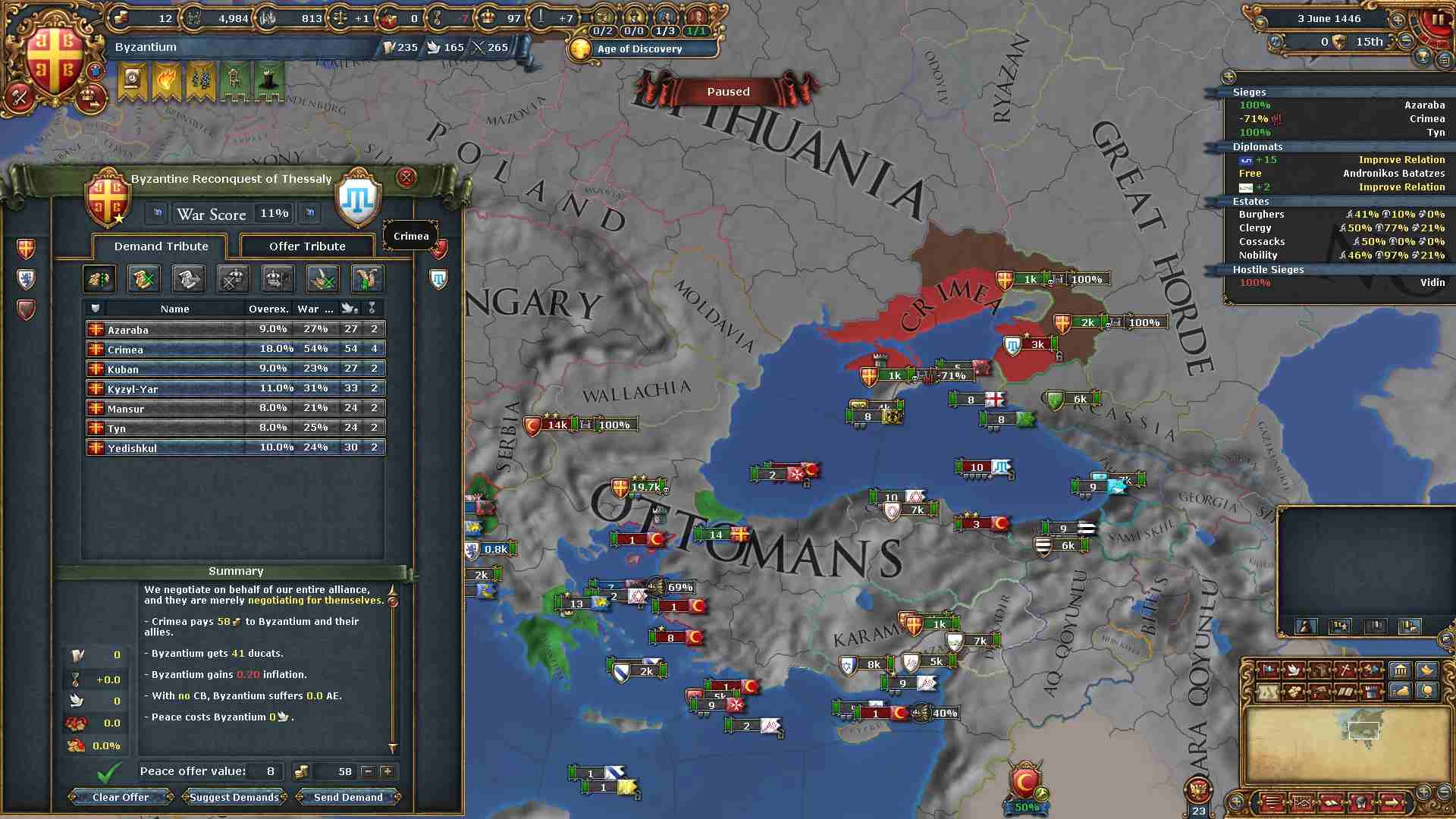 アナトリア側に軍隊を送ることは難しい為、オスマンの同盟軍は白羊朝よりもクリミアの方がやりやすいと思います。