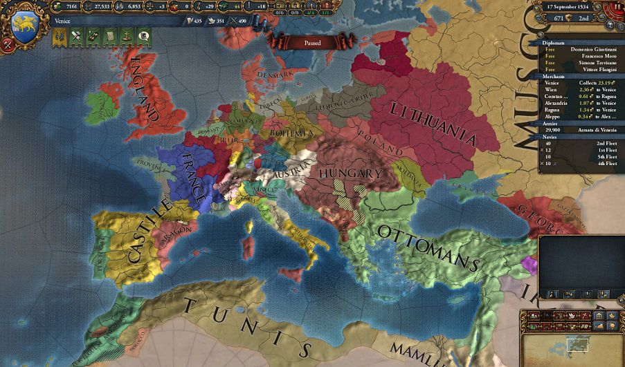 しかし彼らのおかげなのか近くの強国との関係は良好ですし、一番怖いオスマン帝国は知らない間に目標をクレタ征服からトレビゾンド征服に変えています