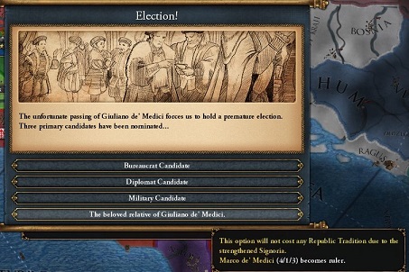 この後もHREに残っていると威信などにペナルティを受けるのだが,これはHRE皇帝と同盟していると回避できる.