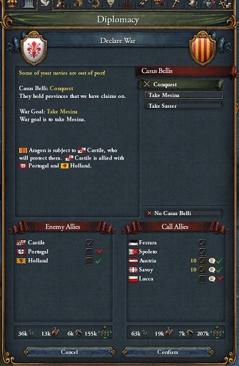 Austria・Savoyを呼んでCastile=Aragonに宣戦布告.