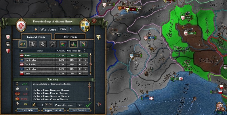 終戦後にLuccaと同盟し,イタリア国家2ヵ国以上と同盟したことでミッション2-2を達成する.