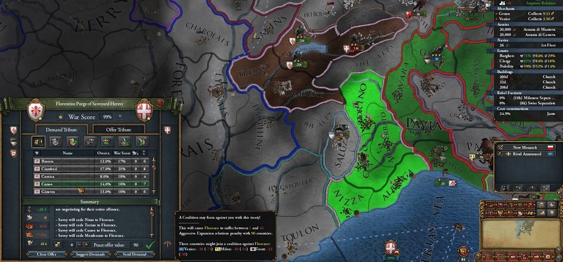 Savoyから対Genoa戦のお誘い.CorsicaにStrategic Interestを付けておく.