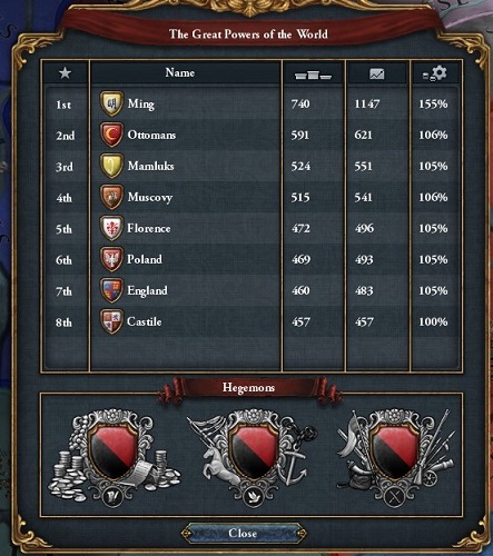 Castile・England・Franceに対して順位こそ上回っているが,属国の国力や軍質の差を考えると油断できない.