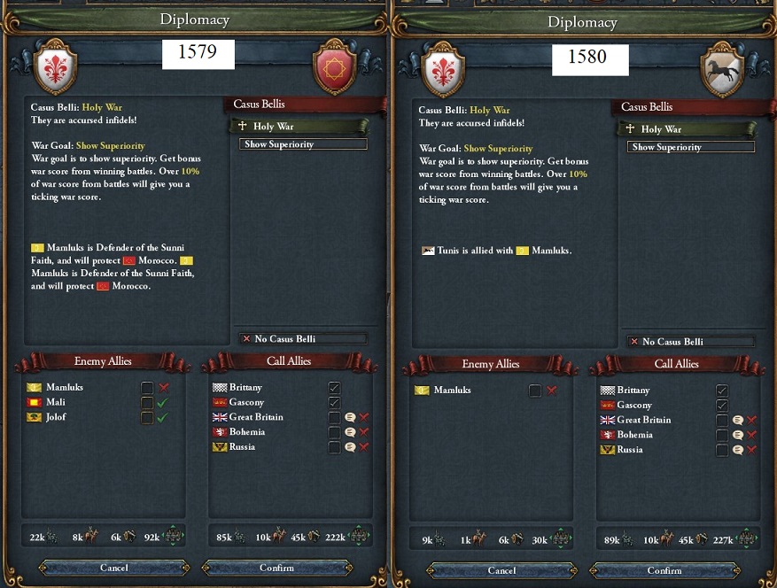 宗教リーグ発足.正教のFlorenceでは戦争を主導できないし,同盟国が両陣営に分かれている.