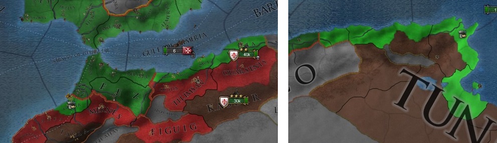 MoroccoとTunisに宣戦してアフリカに進出する.