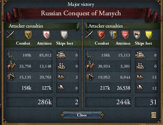 なんやかんやあって1605年に終戦.損害のほとんどはRussia軍だった.