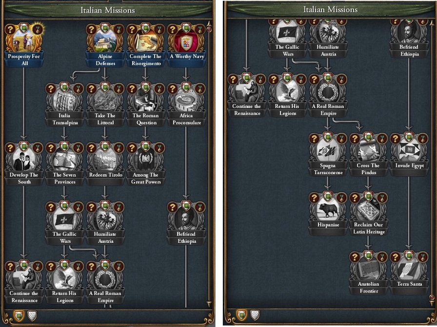 イタリアのミッションツリー.アフリカ前執政官とかエチオピアとの同盟とか,色々と時代を間違えたものが入っているような?