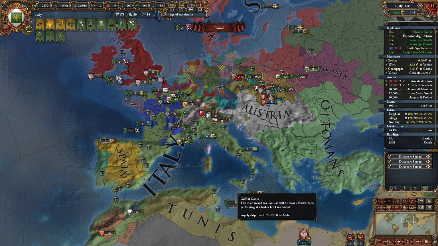 ディシジョンを踏めるようになって70年,ようやくItalyに変態できた.すでに西ローマみたいな領土をしているのだが.