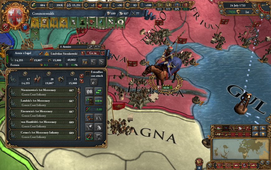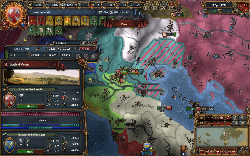 ヴェネツィアの占領を目的として、Franceとの初戦に挑む。