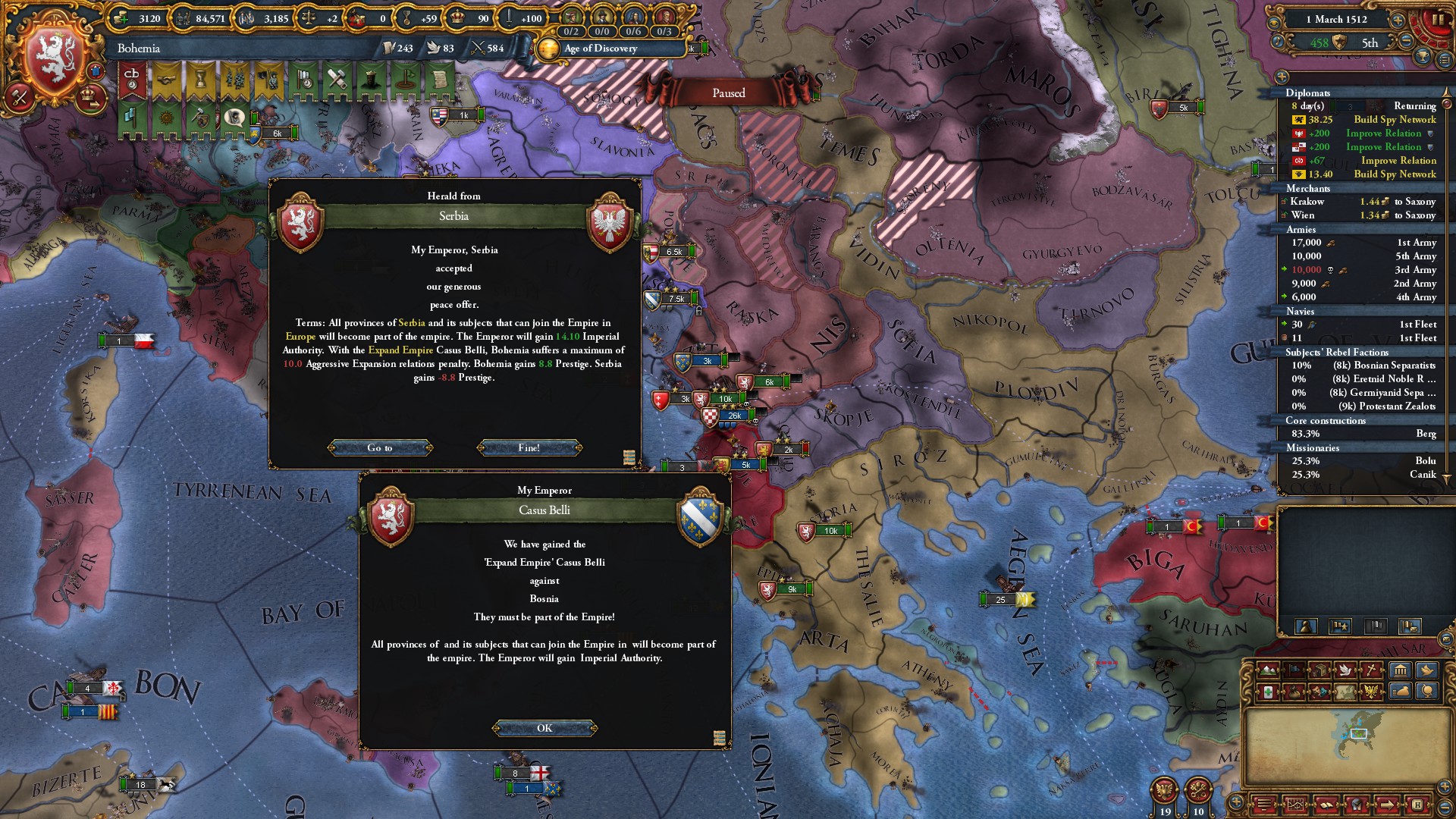 続いて、セルビアも同様に加えて、IA14.10ゲットしたガァー!!それとボスニアに対するExpand EmpireのCBを手に入れたガァー!!