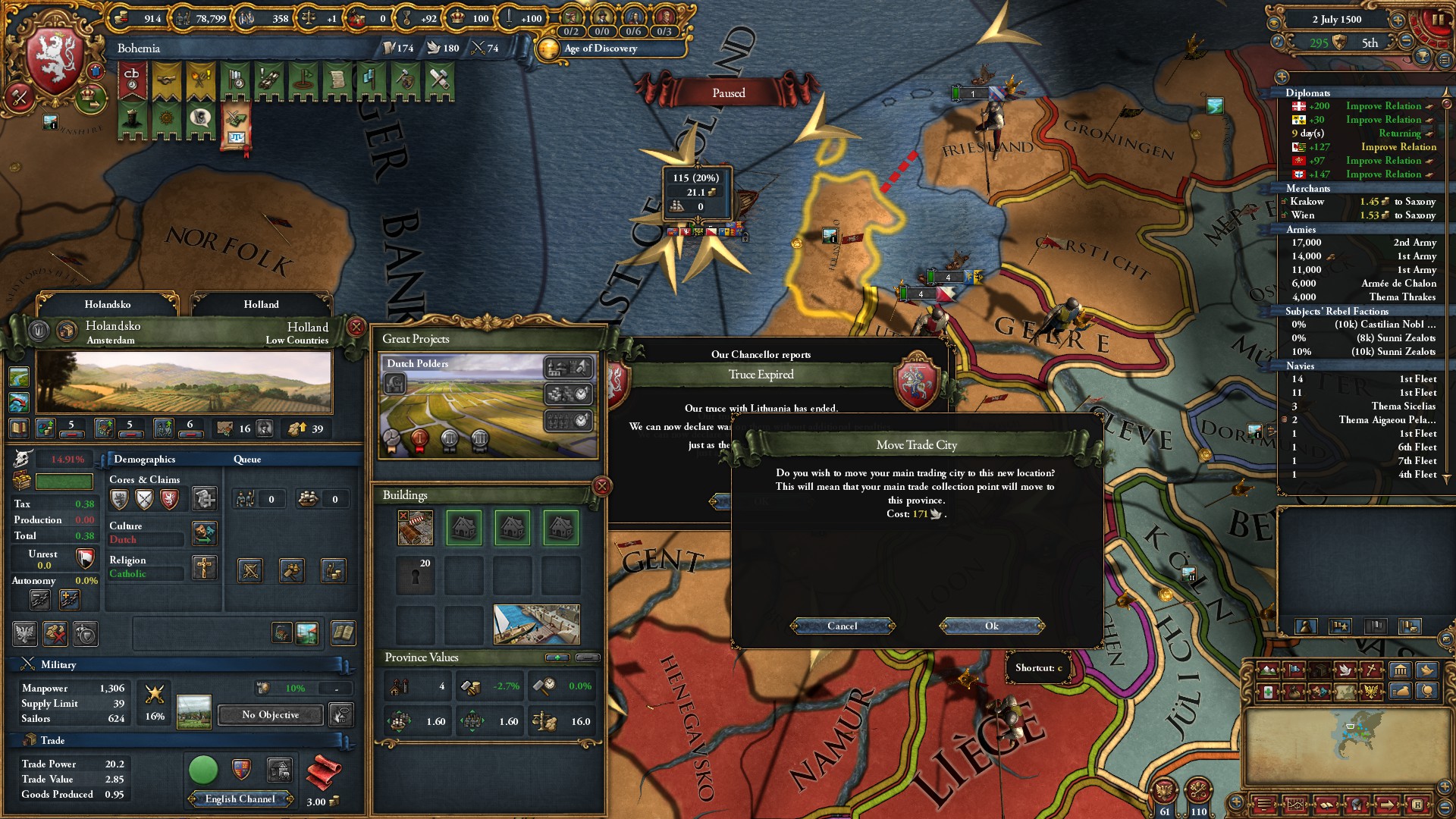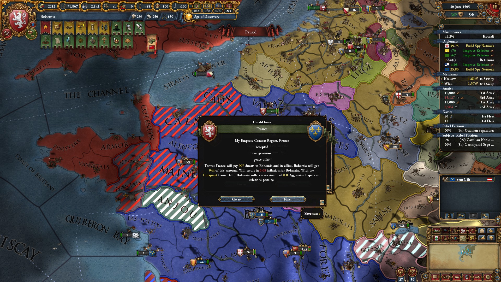 1500年に帝国の議題の4番目を通過させました。なお、イベリアやポーランドの同君化強制により、AEの蓄積のせいで数年遅れました。