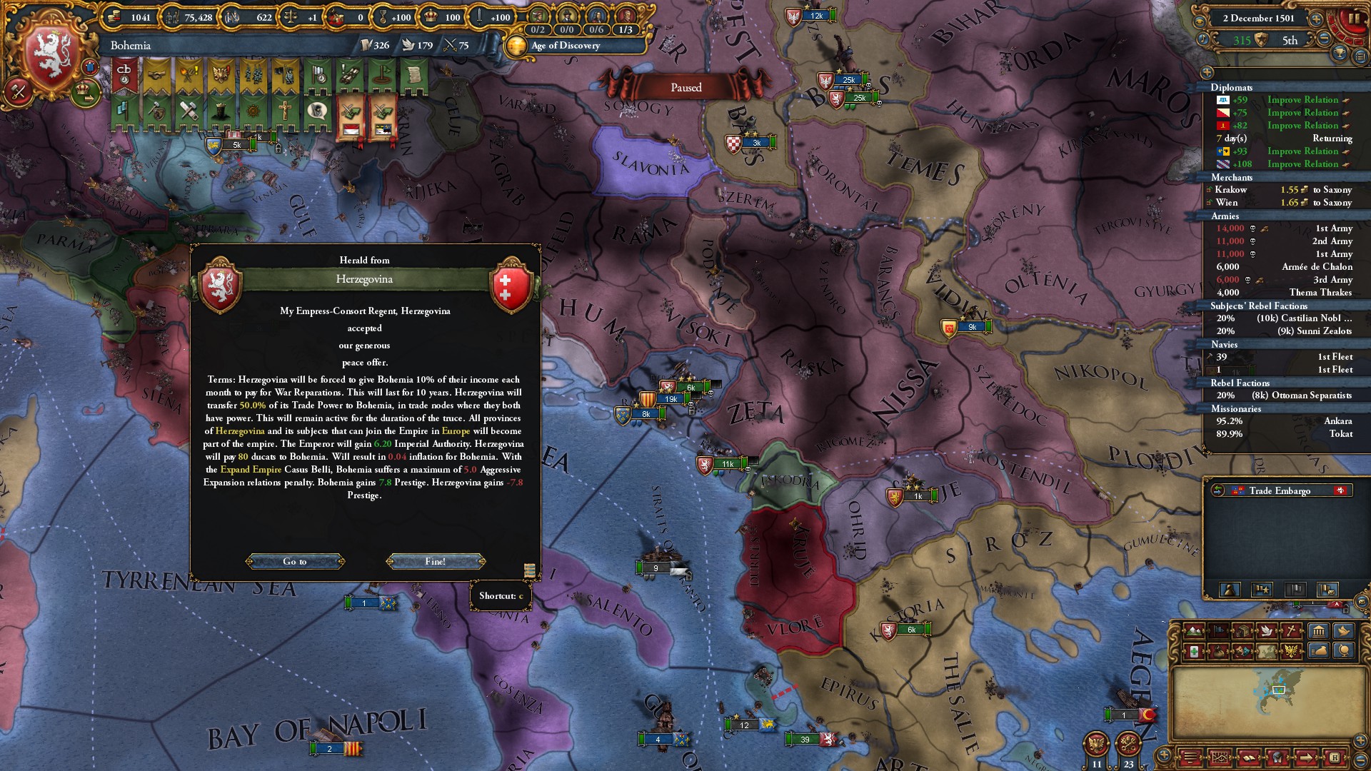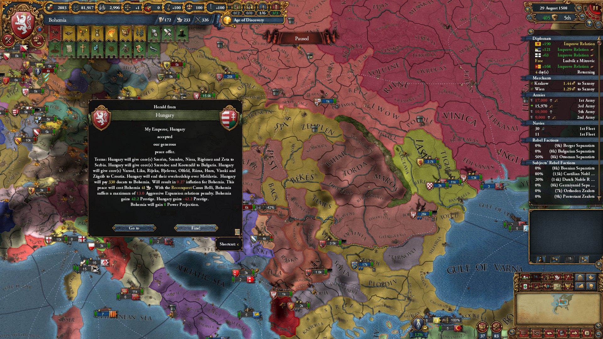 1501年にヘルツェゴビナをHREに加入させたわ。記念すべき第一加入国で、IA6.2獲得よ。