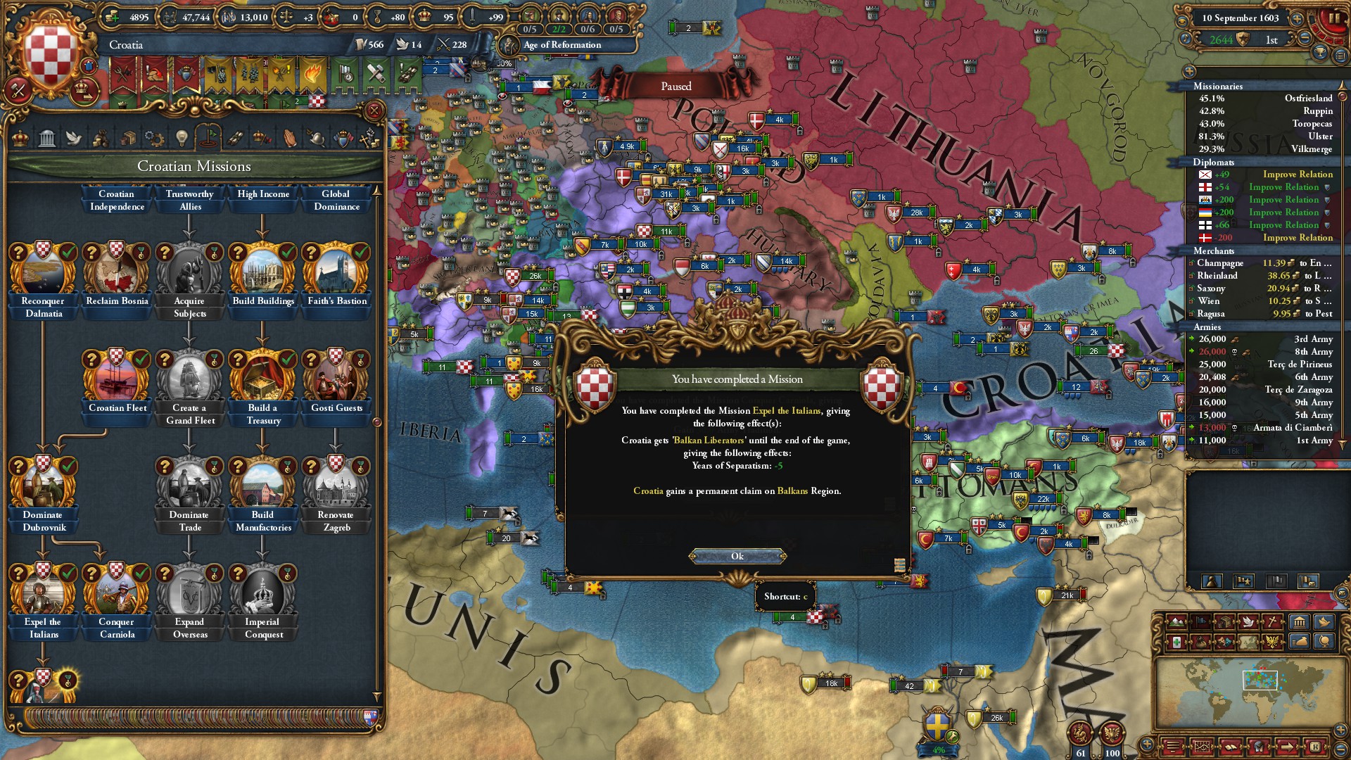 ということでクロアチアに変態し、分離主義-5の恒久報酬獲得よ。