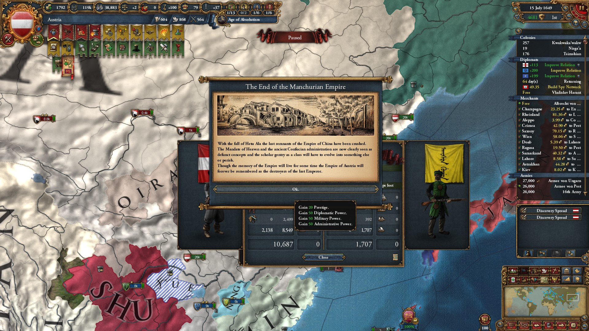 1658.6、エチオピアを外交属国化し、フス派に改宗させたわ。私の名声が世界中に届いている証拠ね。