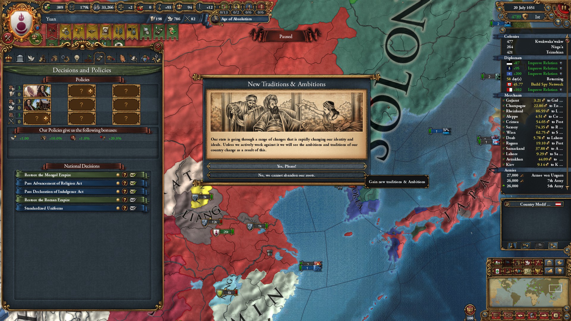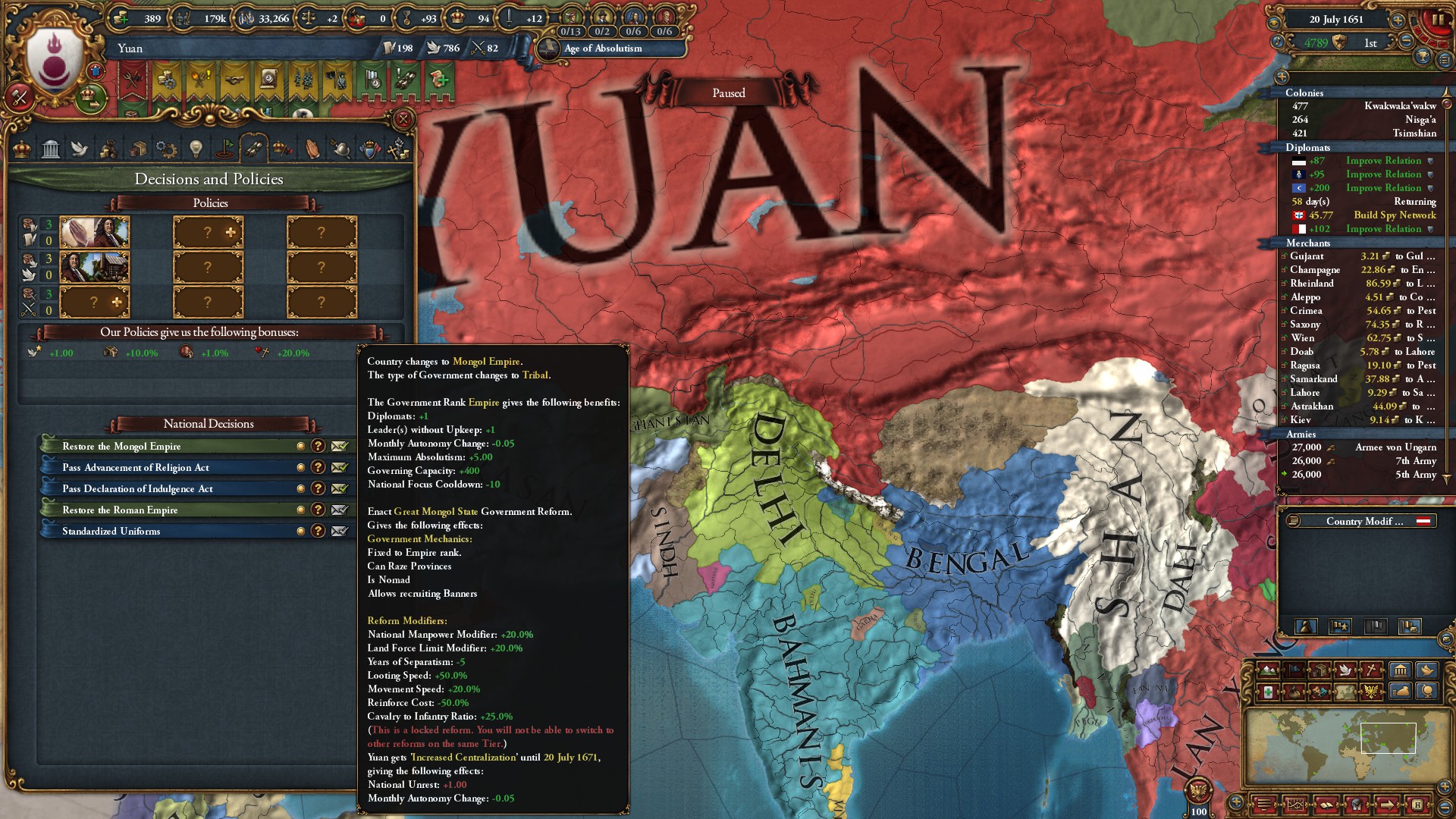| 支那-モンゴル政権 | Sino-Mongol Administration | 統治効率+5% |