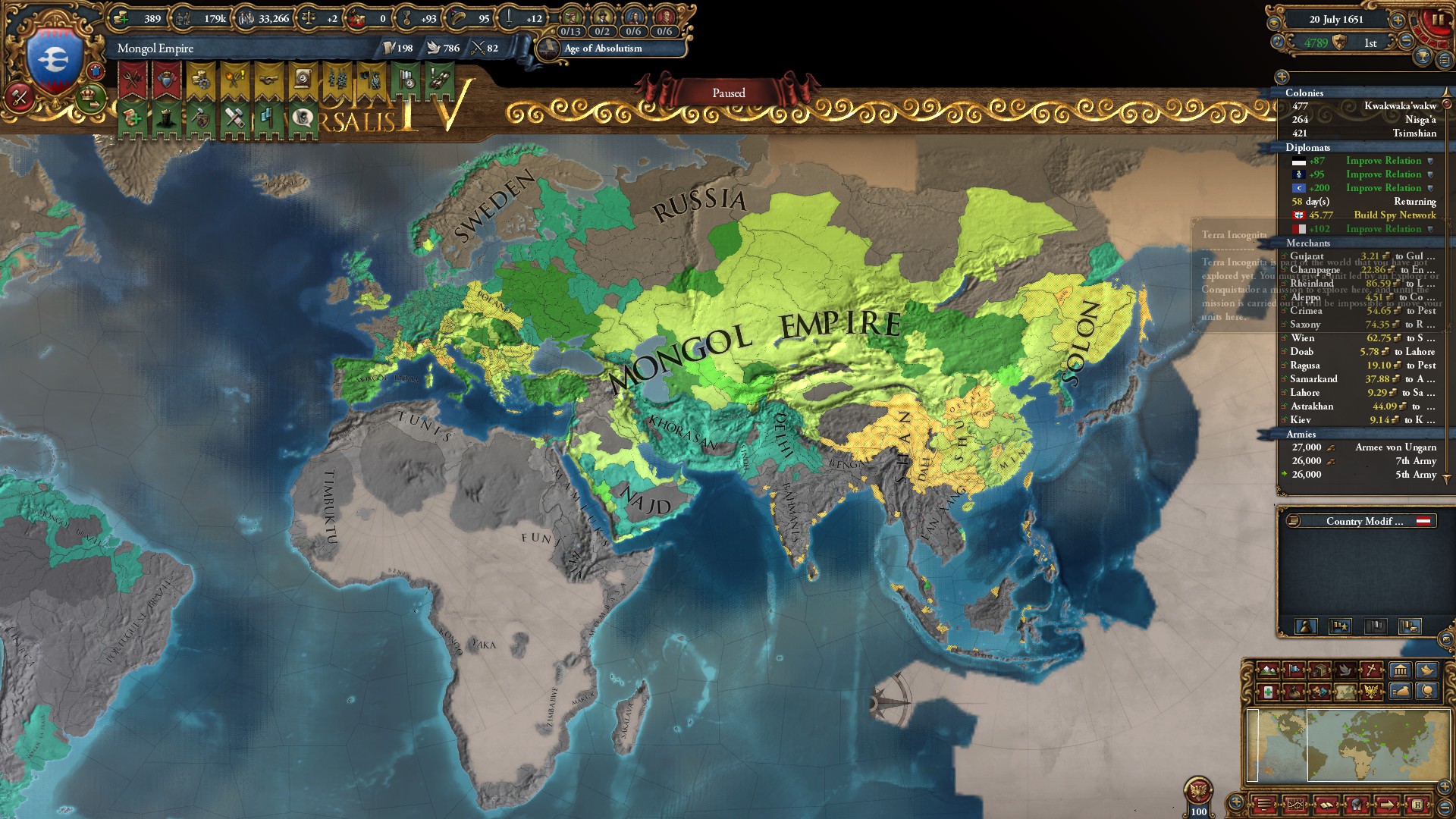 統治効率+5%はどちらも持ってますし。関係改善+33%があるおかげで、多くの属国を併合できるからこっちもありですな。