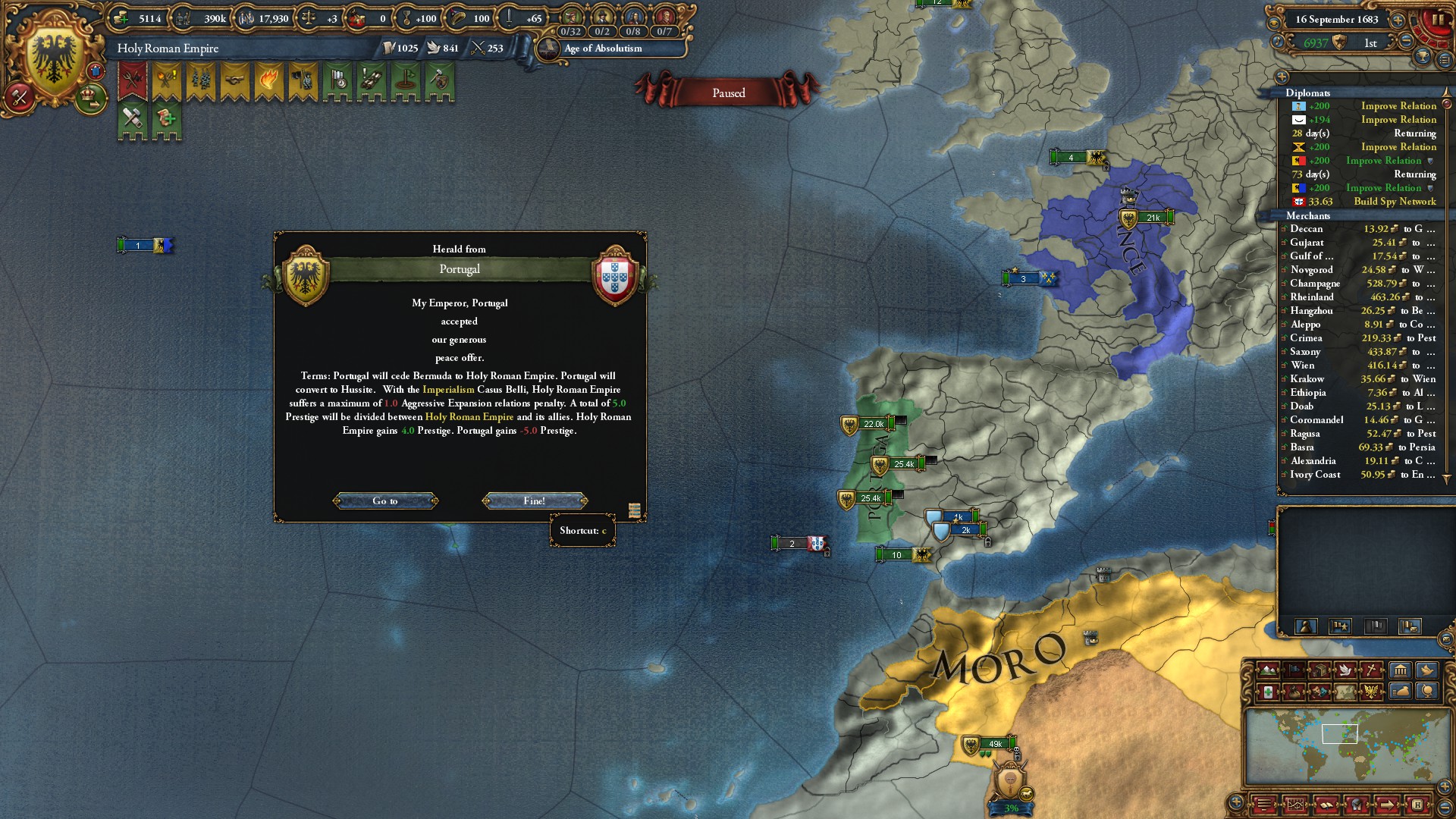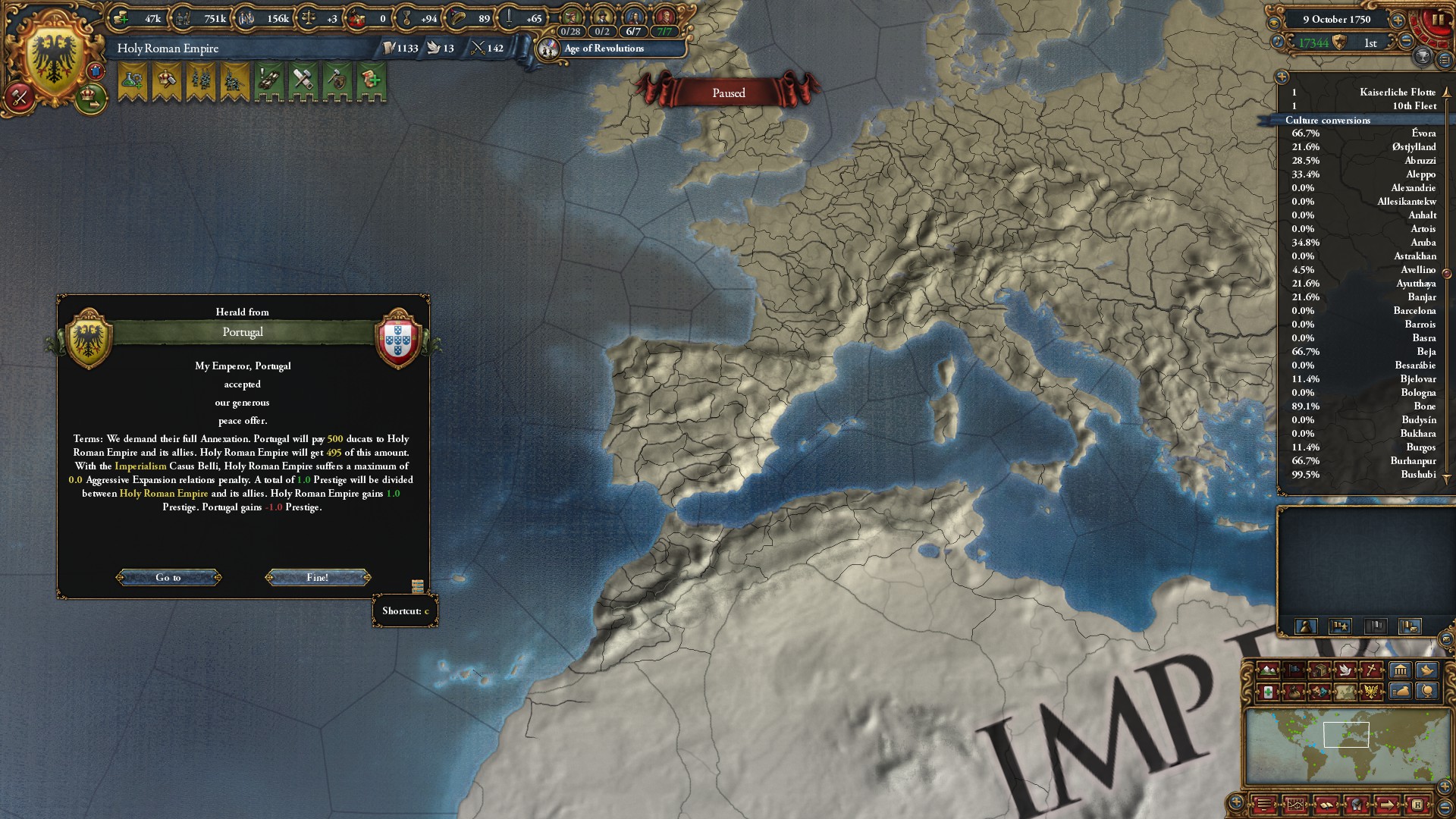 1750.10、ポルトガル武力併合したガァー!!これでWC、One tag達成したガァー!!