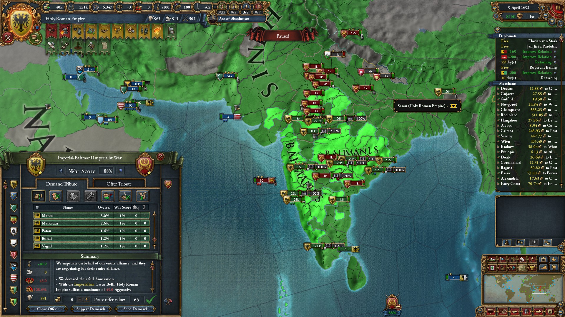 特に、改宗向きのNIを持っているナジュド、シンド、アジュラーン、エチオピアに加え、植民してくれたソロンやマジャパピトが有用な属国でしたな。