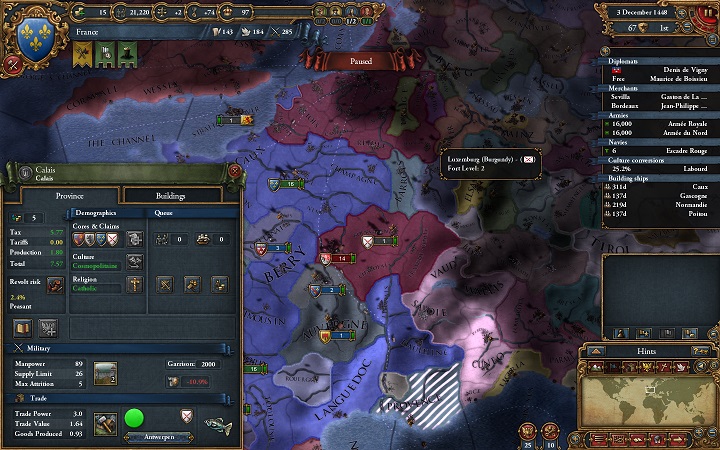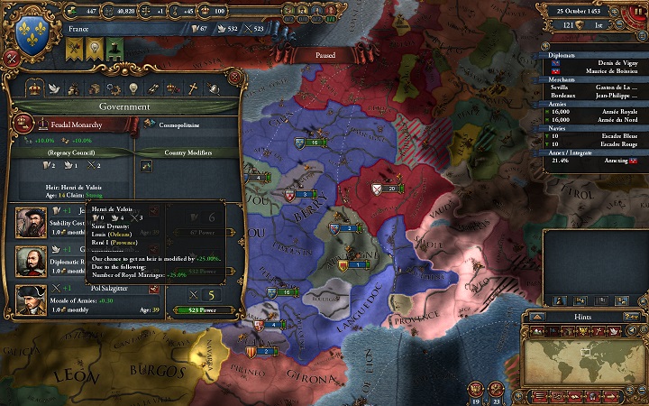 商人をセビリアに送ってトランスファーさせ、海軍は2分割してボルドーとセビリア支援。