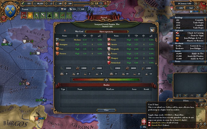 いつの間にか成立してたスペイン盟主のイベリア半島同盟に殴られる。