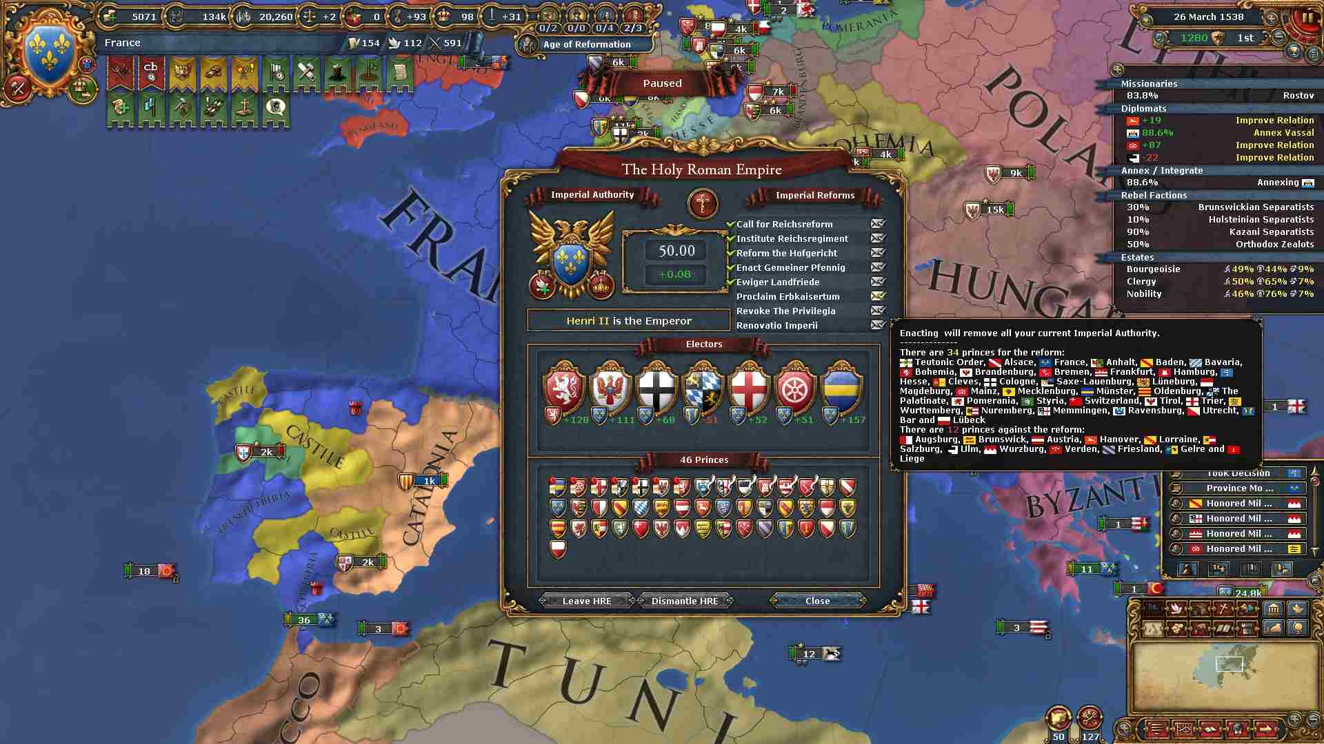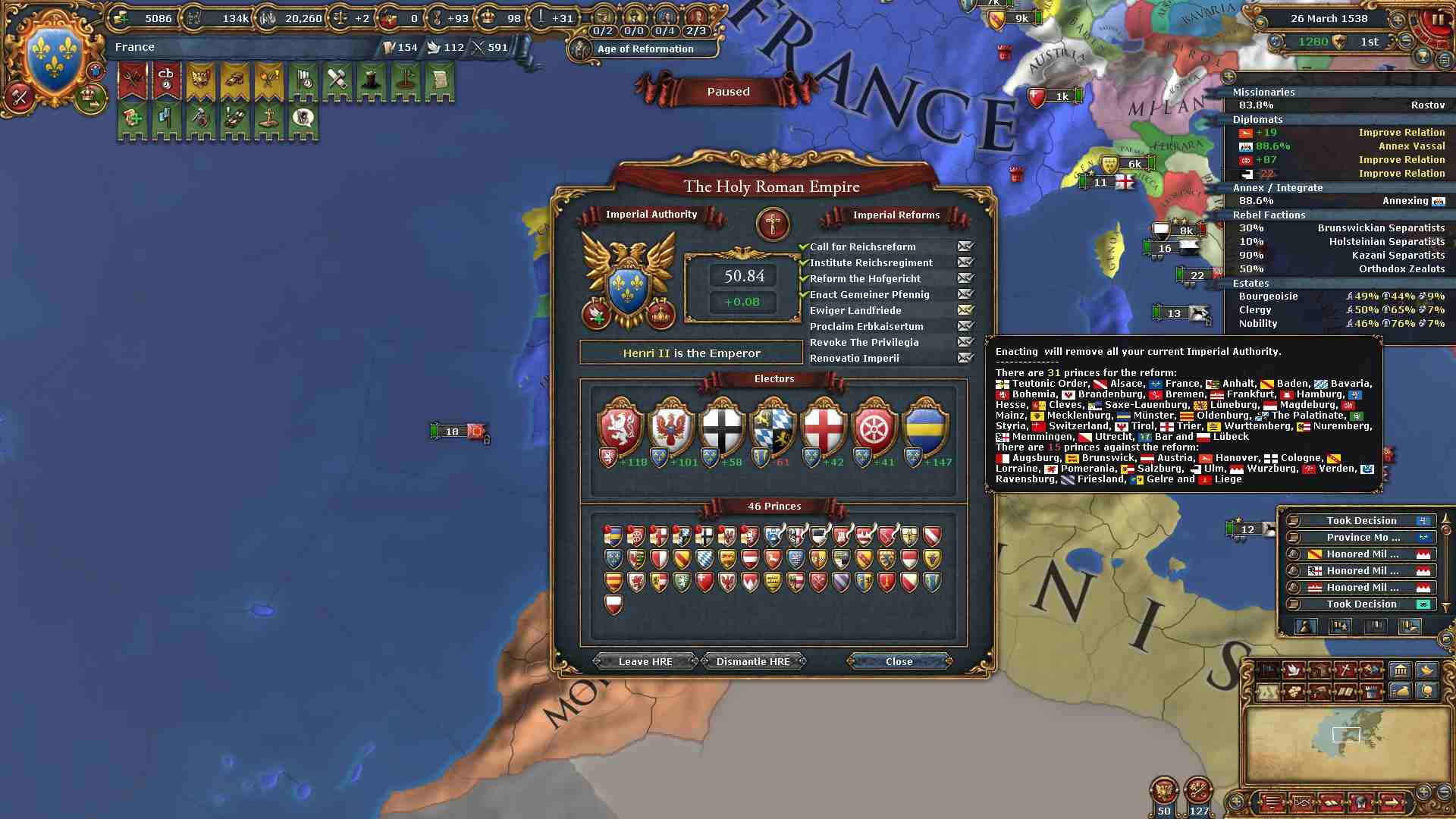 帝国改革を通すために帝国権威を上げる用の領土も十分あります。