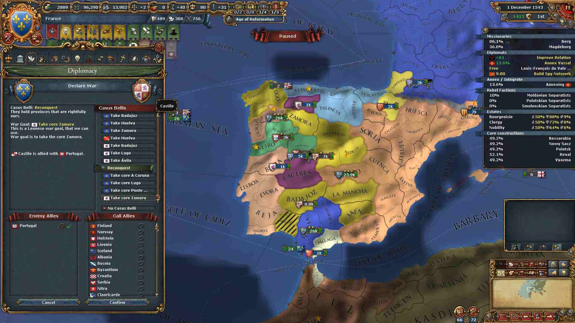 異端の改革中心地を全て潰すことが出来たので、帝国諸侯に対して戦争を行う必要が無くなりました。