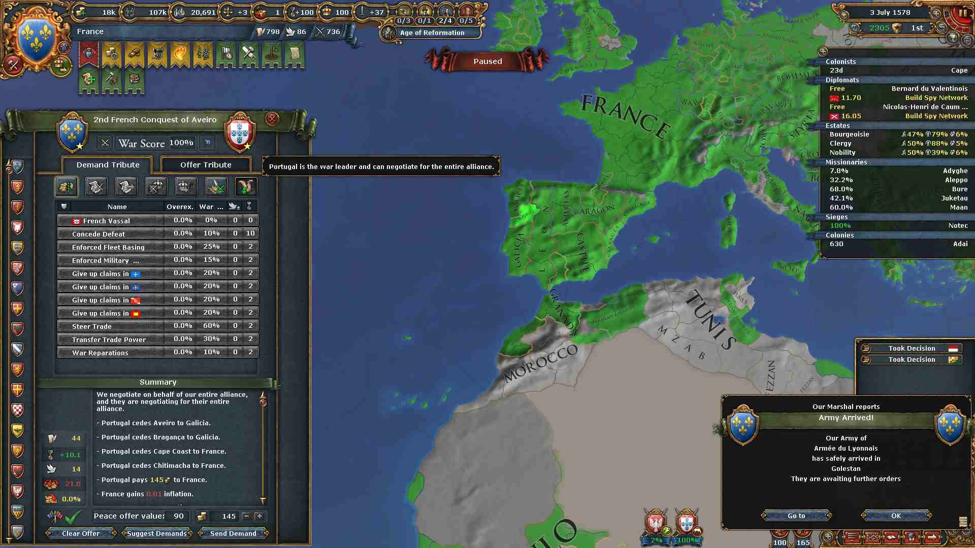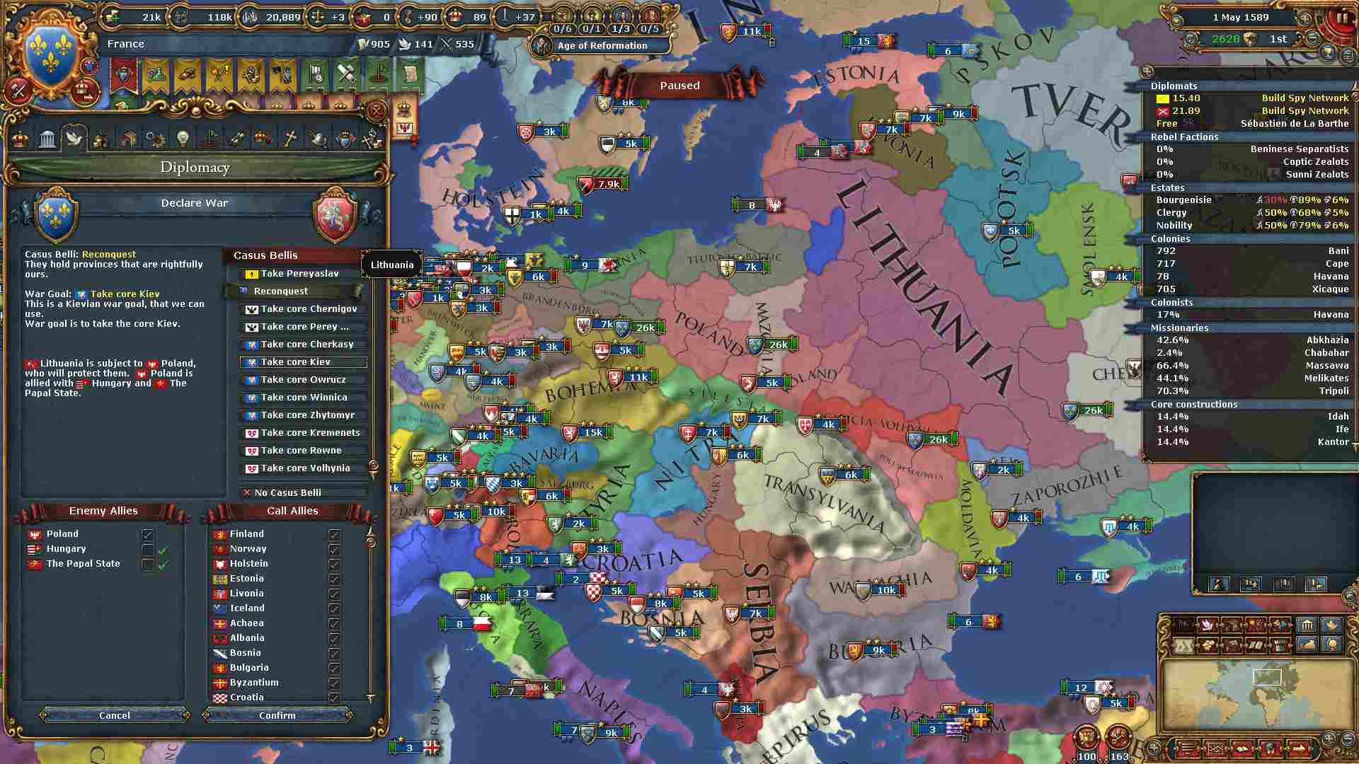 欧州大陸の敵国はポリ連合と教皇領だけとなりました。