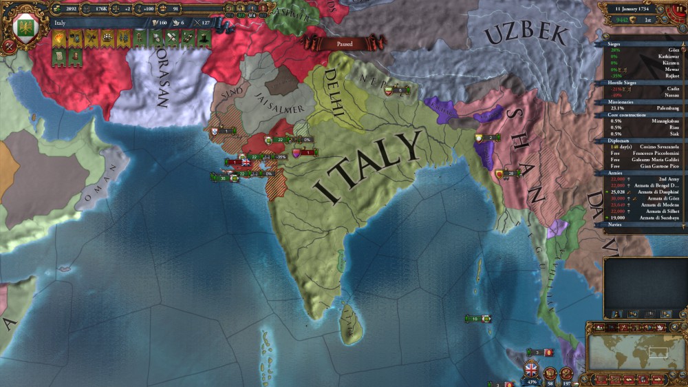 最初に侵攻を始めたイタリアはベンガル地方を拠点に勢力を拡大させます