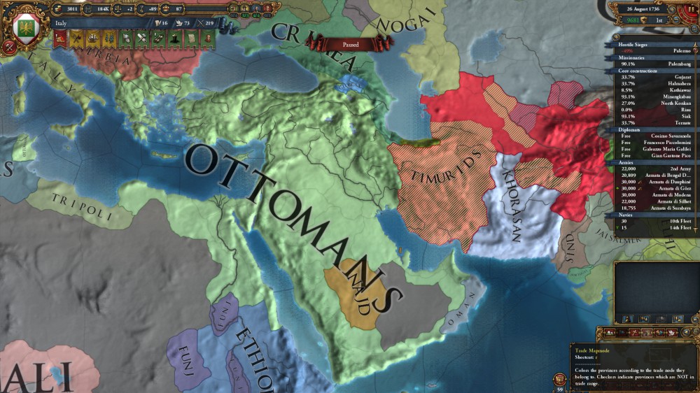 ver1.4だった頃はティムールを保護国にしてイタリアの大きな障害となっていたのですが、今回はガッツリ敵対している様子