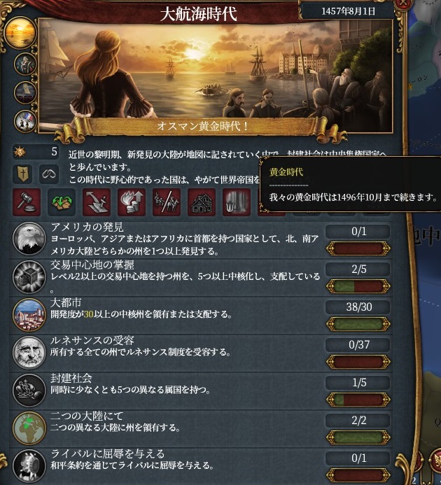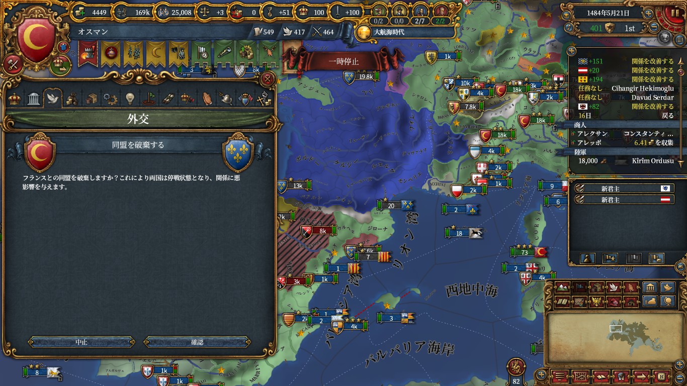 ここから停戦破棄を使えば1480年代でも達成できそう。