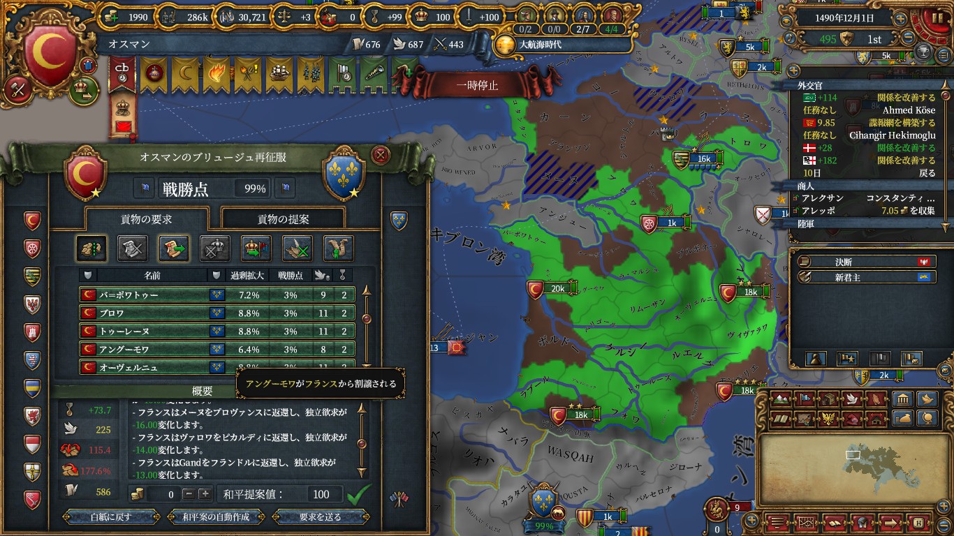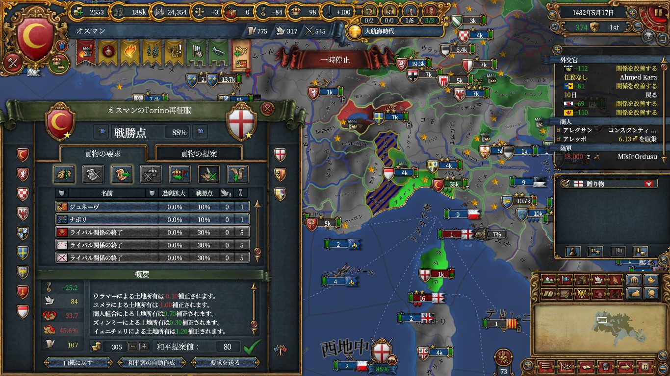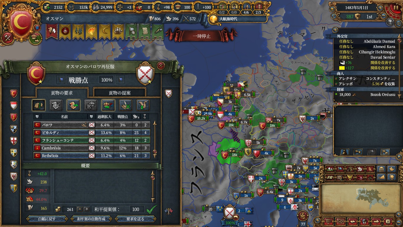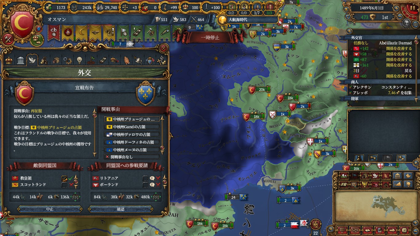 1482年5月30日にブルゴーニュに宣戦し、積みまくった戦勝点コスト減で