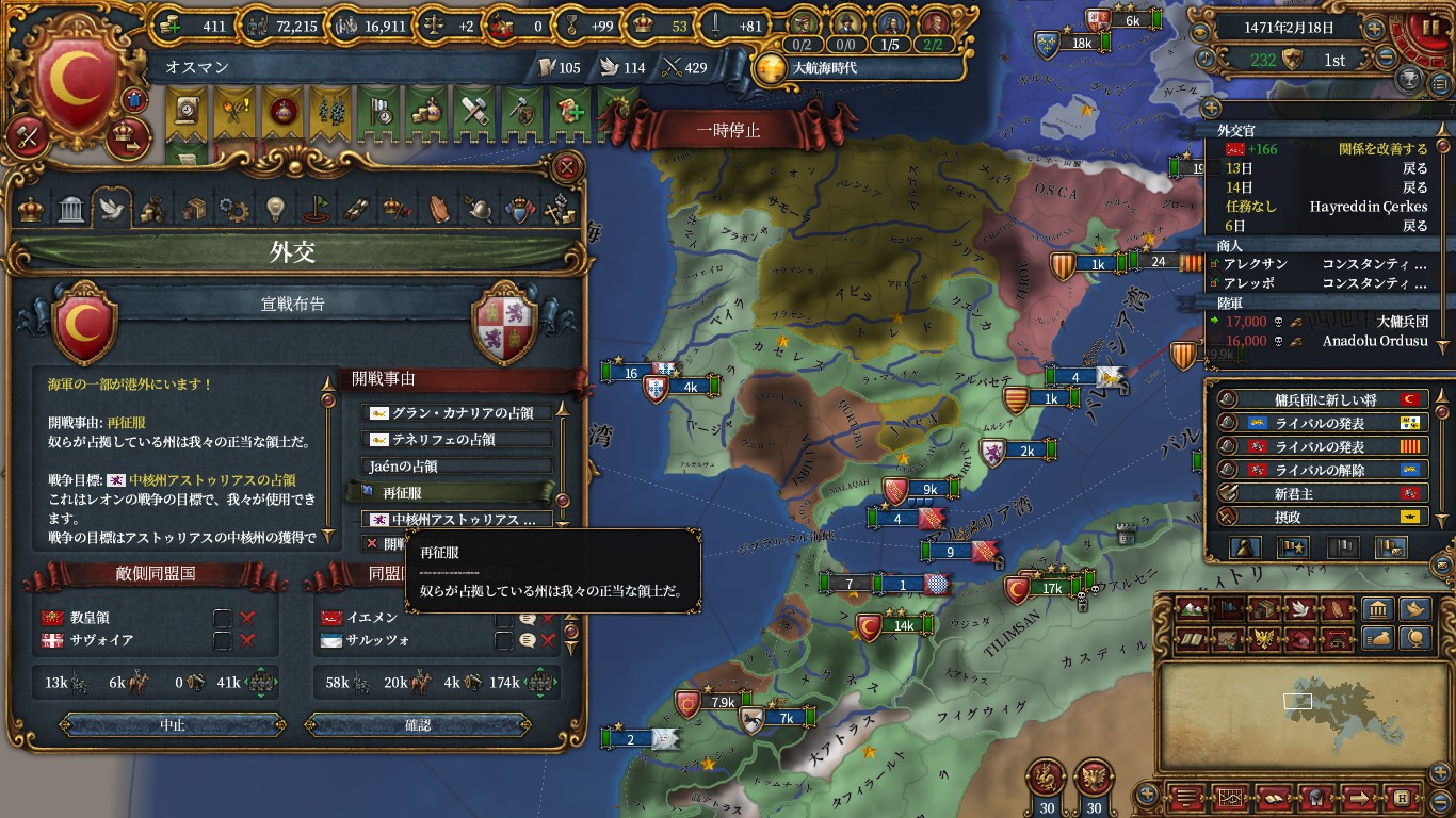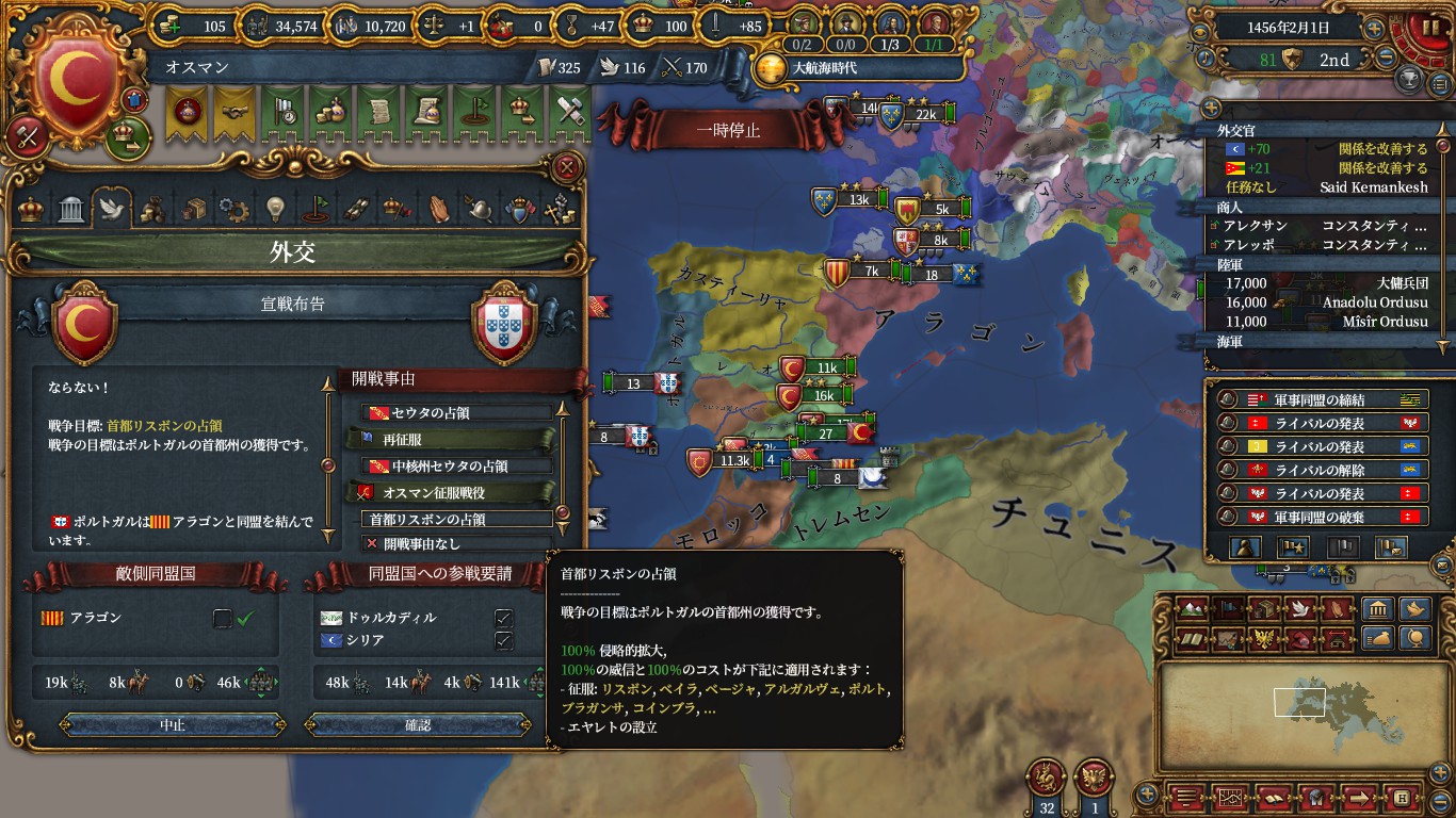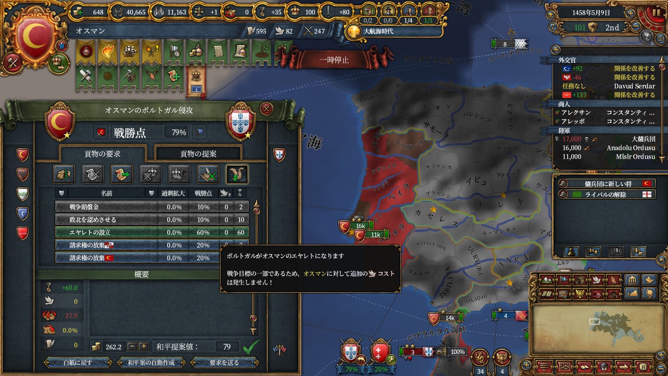 エヤレト化CBを作成してあるので、ポルトガルに対し宣戦していく。