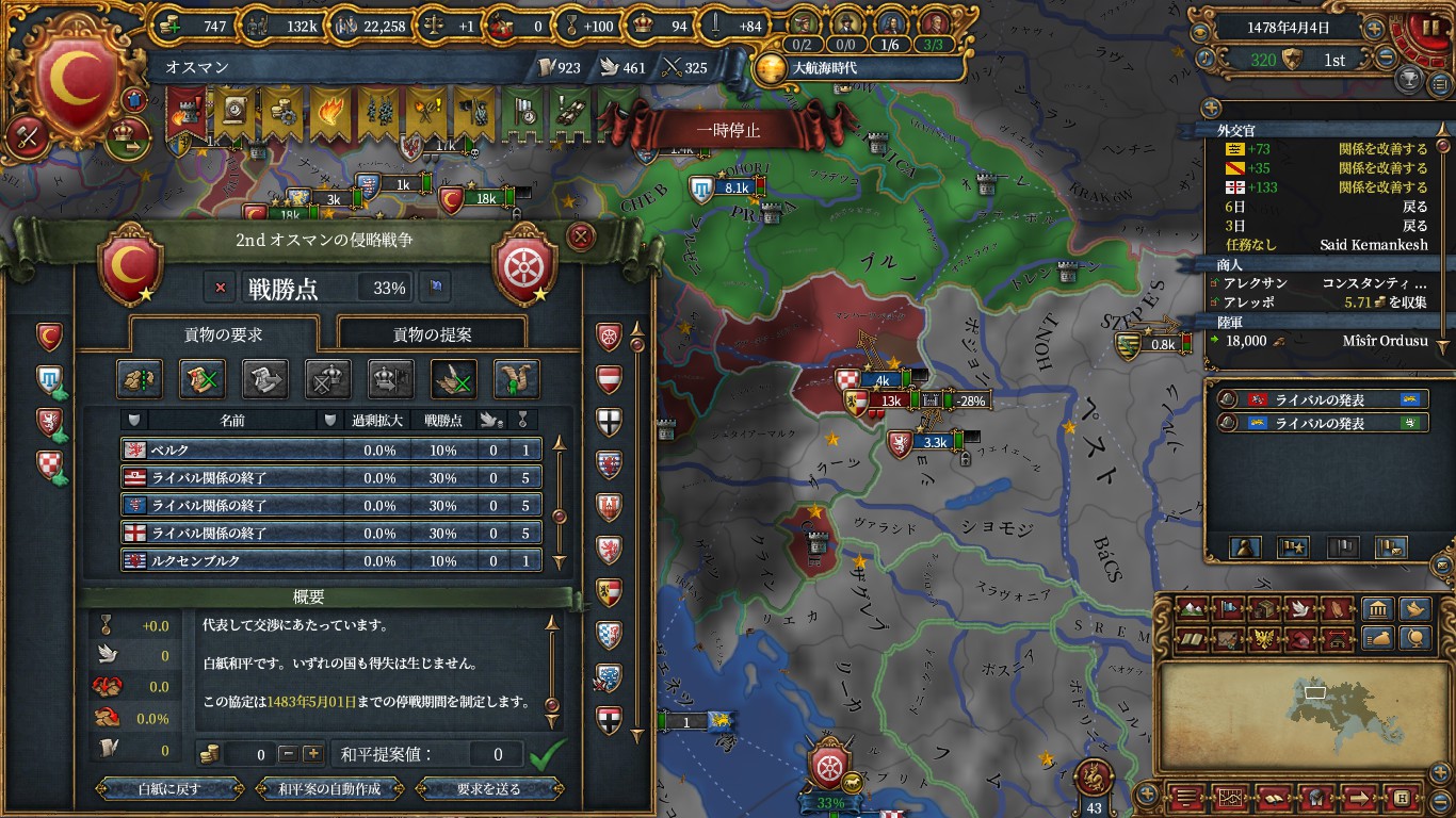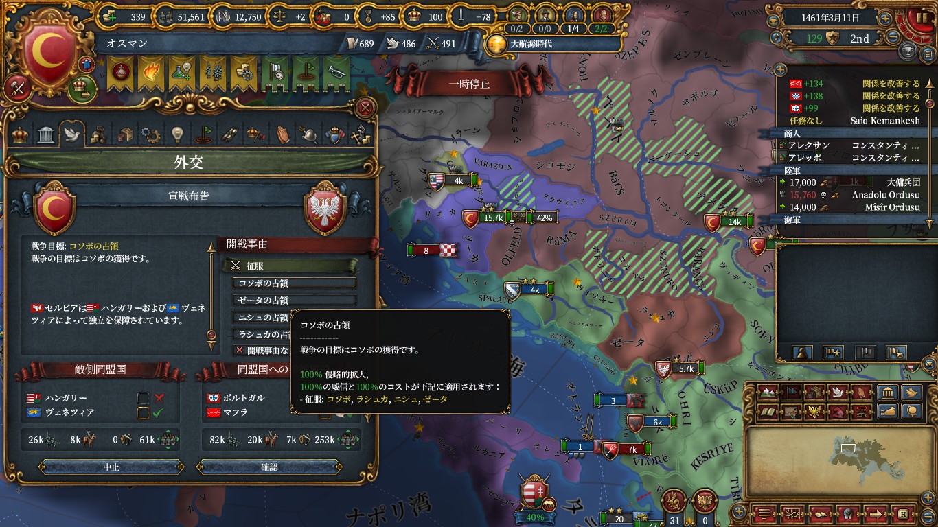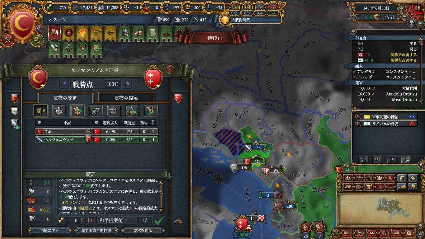 ポルトガル戦中にボスニア再征服で宣戦したヘルチェゴビナを併合。