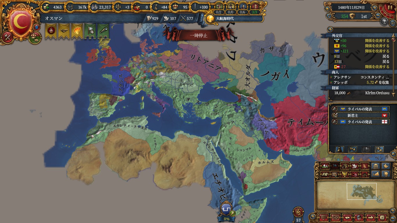 このあたりで外交もコンプしたのでdipフォーカスからmilフォーカスへと変更しました。