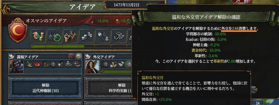 分岐の最終報酬の改革での外交官が欲しいので神秘主義を選択しました。