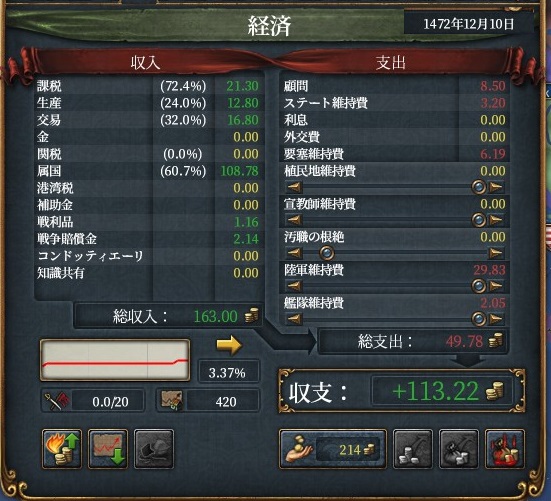 支配は全部エヤレトに任せれば良いので、技術とアイデアぐらいにしか君主点を使いませんからね。