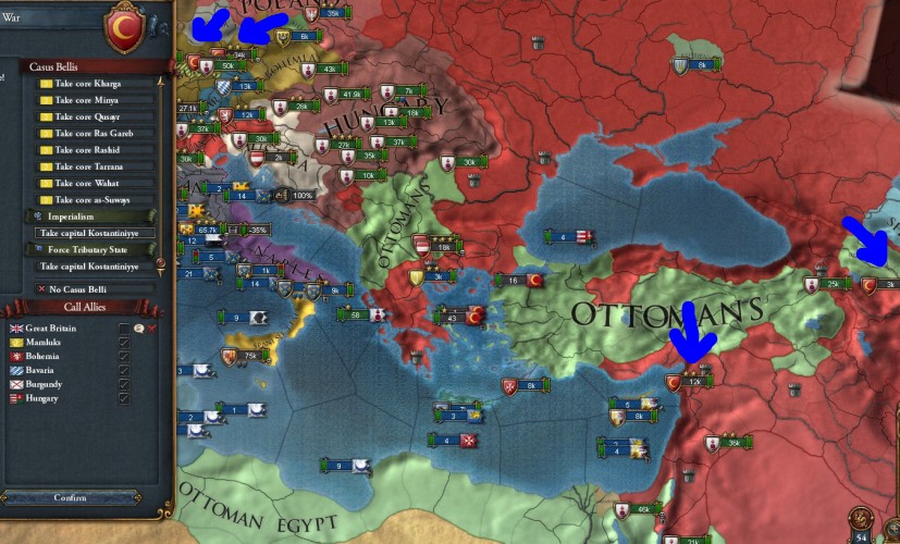 オスマンは慌ててザルツブルグと停戦し軍を引き戻しますが、バルカン半島にはこちらの主力がいるため黒海東岸まで迂回する羽目に。