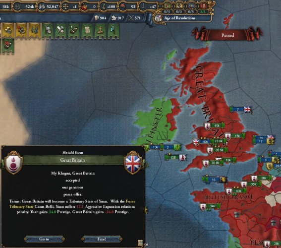 これでユーラシア大陸は全て大元帝国の支配下に収まりました。