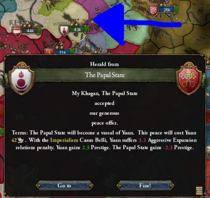 教皇庁を属国化した直後にこんなイベントが。