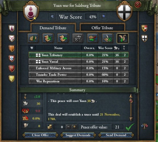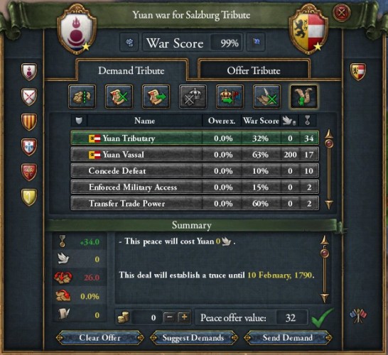どうしたものか迷ったのですが、ザルツブルグとは分離和平することにしました。