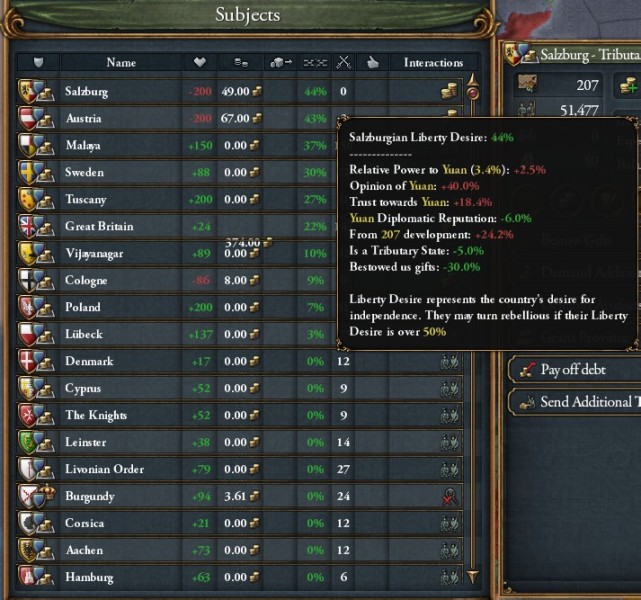 オーストリアは元の朝貢国にも多数の同盟先を持つうえにDipRepが高く、こちらに仕掛けると多数の朝貢国が離反します。
