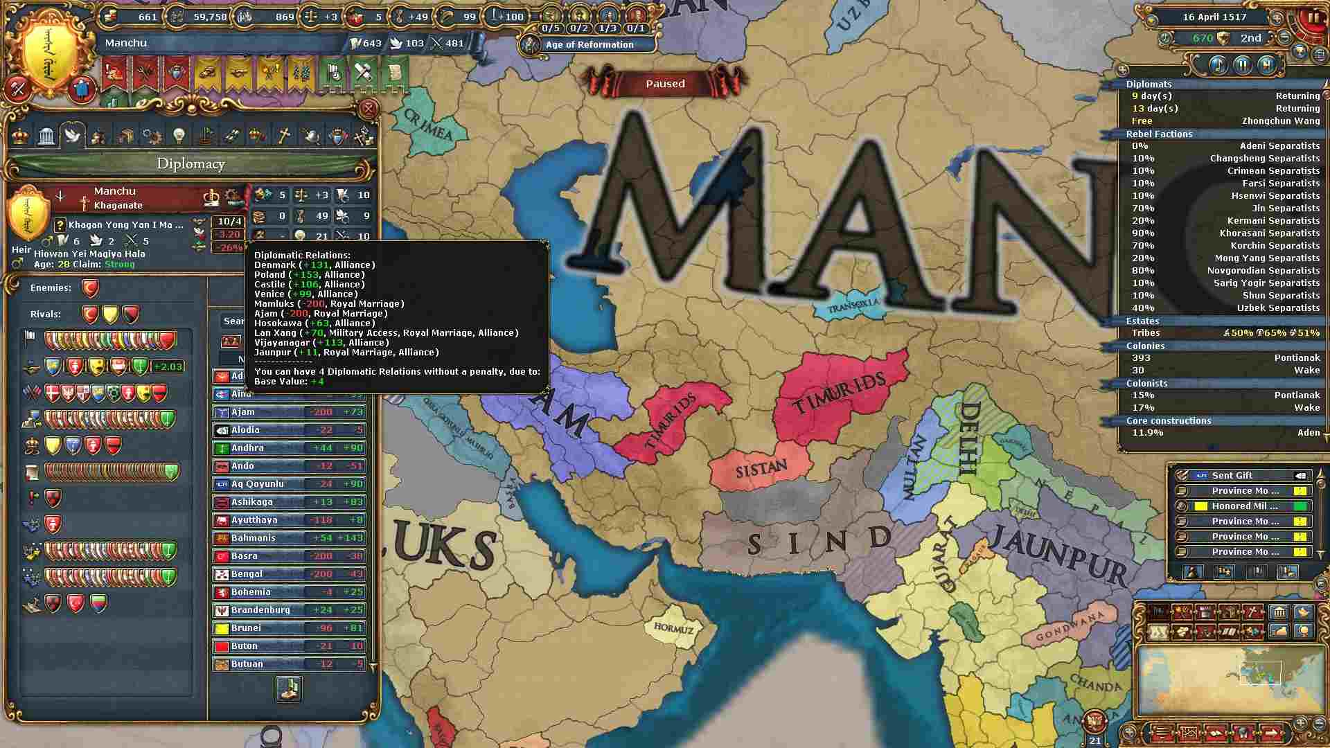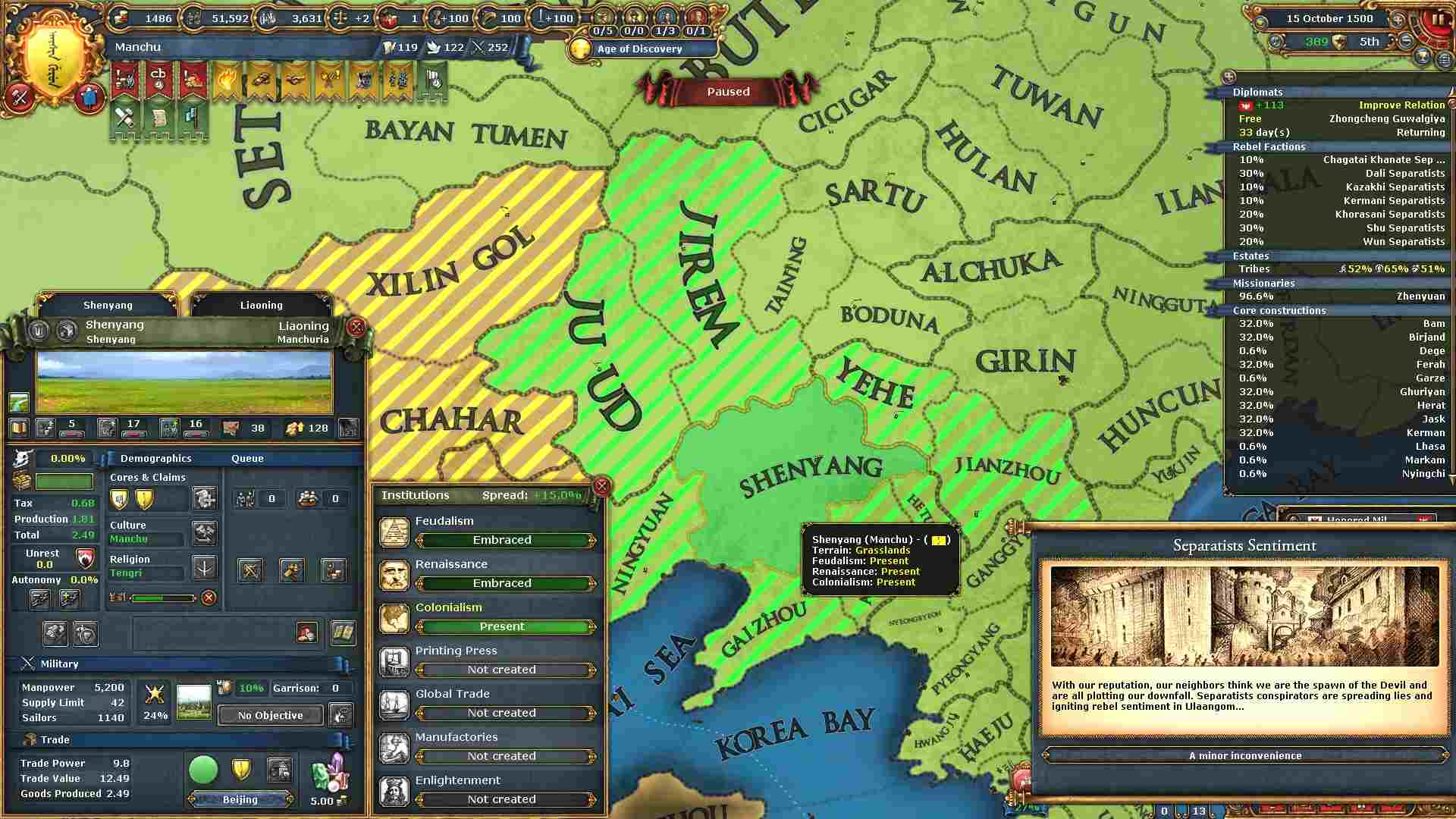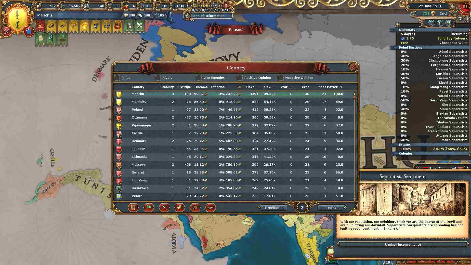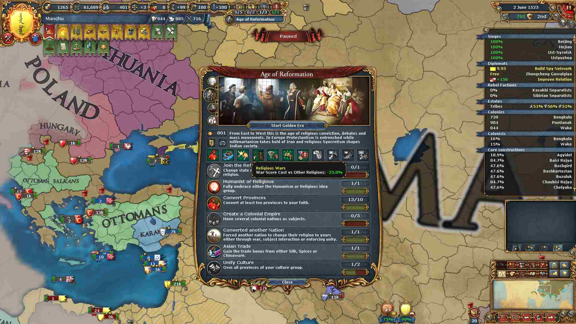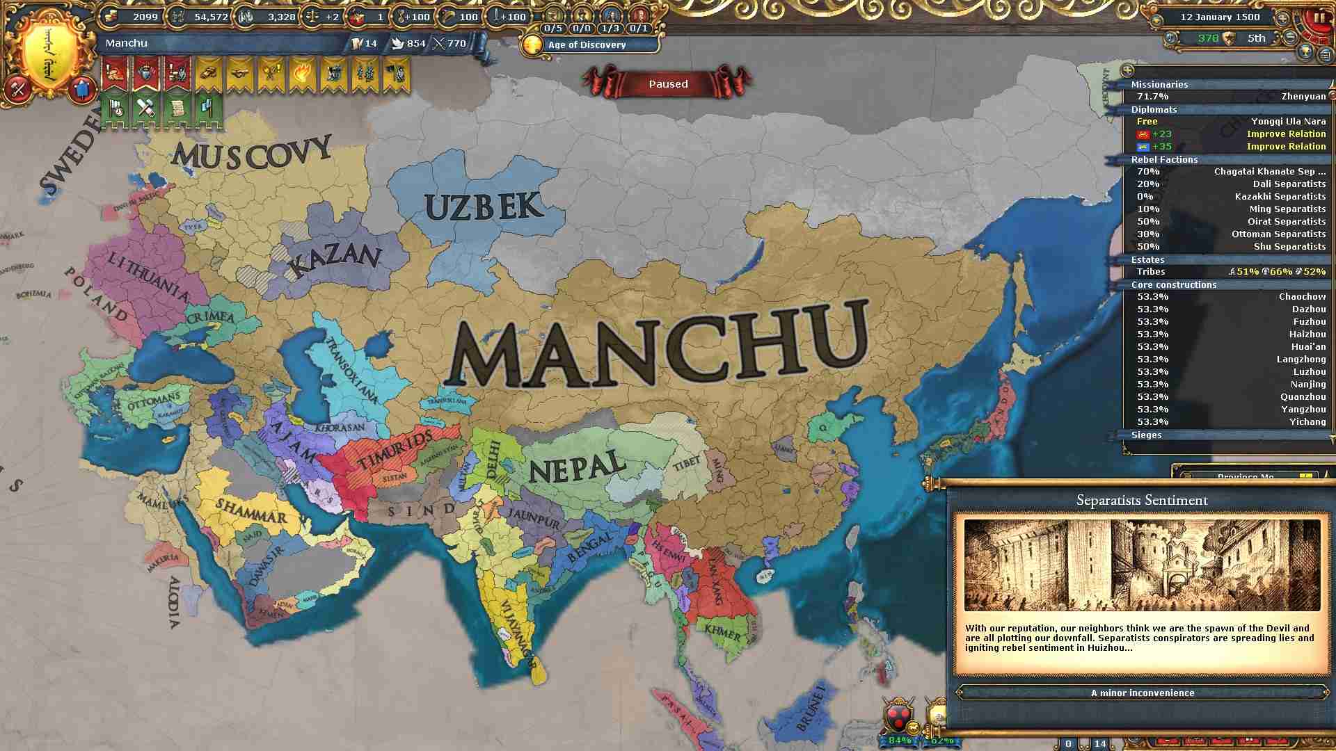 反乱軍がポコポコ生まれますが自治度上げや鎮圧部隊で乗り切ります。