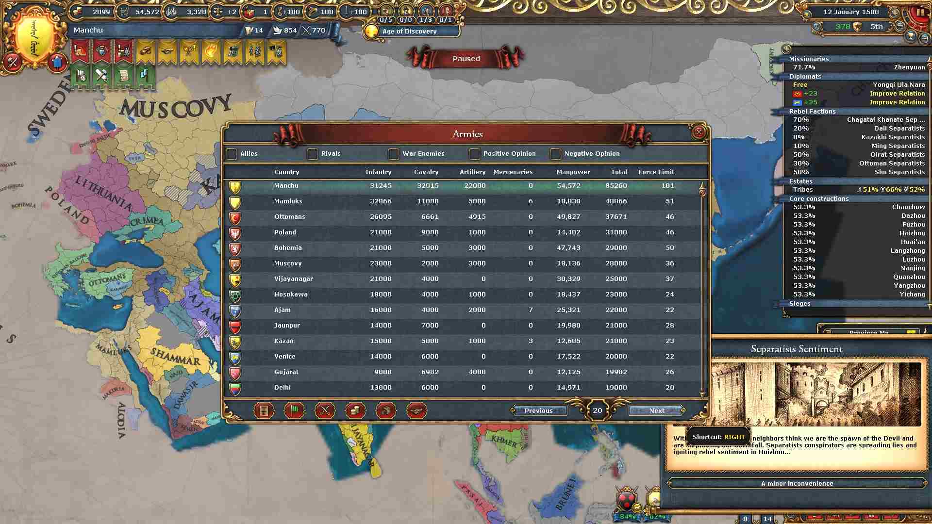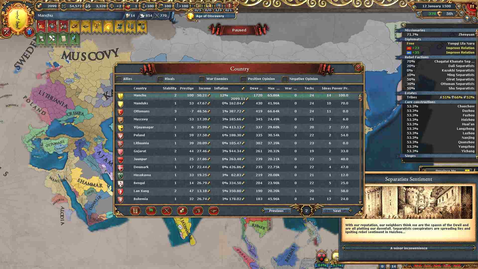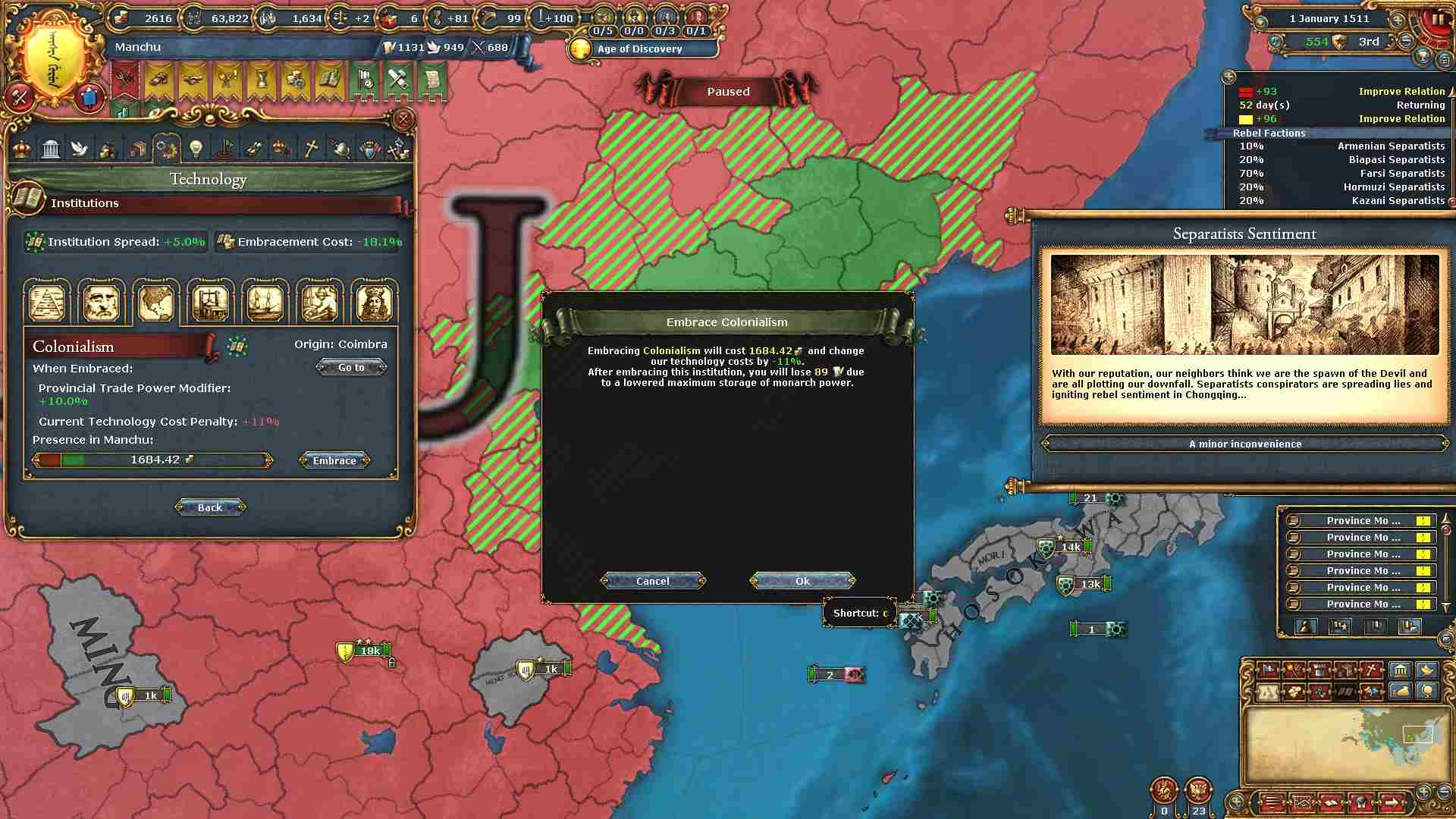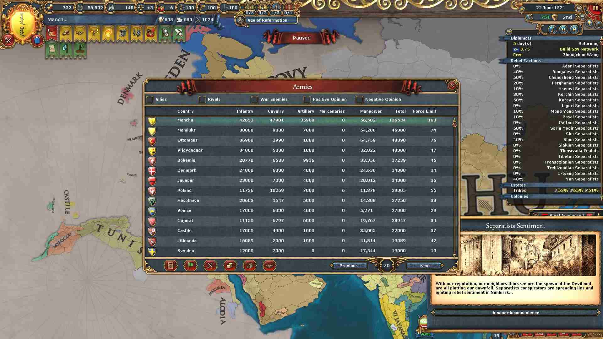 反乱軍がポコポコ生まれますが自治度上げや鎮圧部隊で乗り切ります。