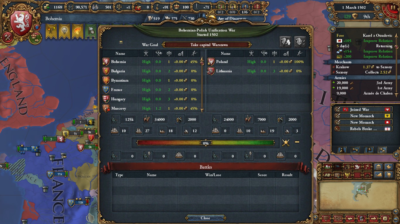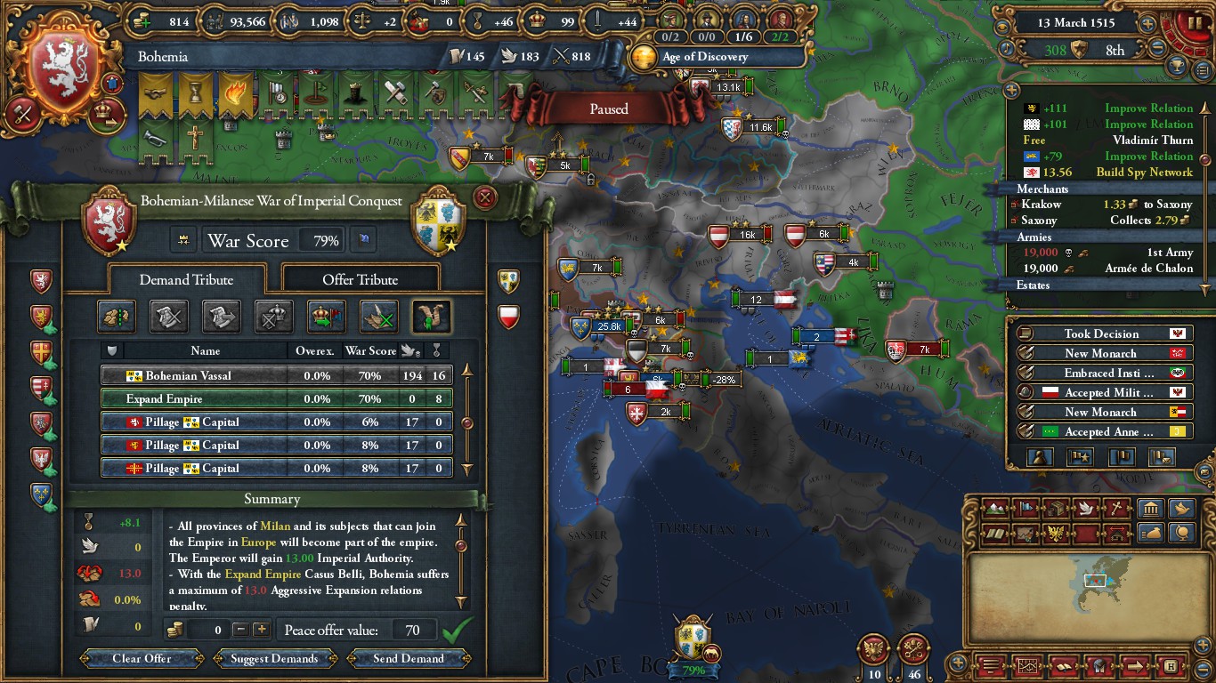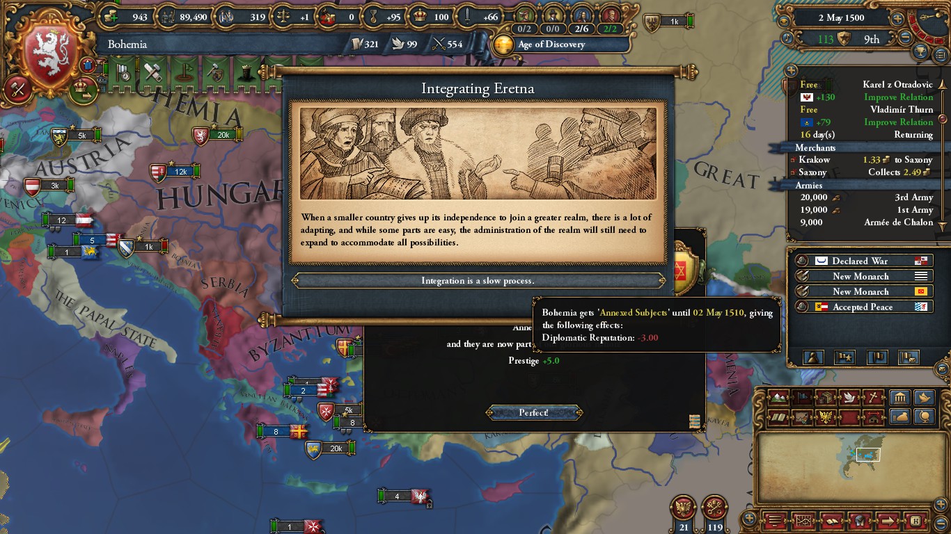フィレンツェに帝国拡大CBで宣戦したが、途中で100%スコアを超え、編入失敗。