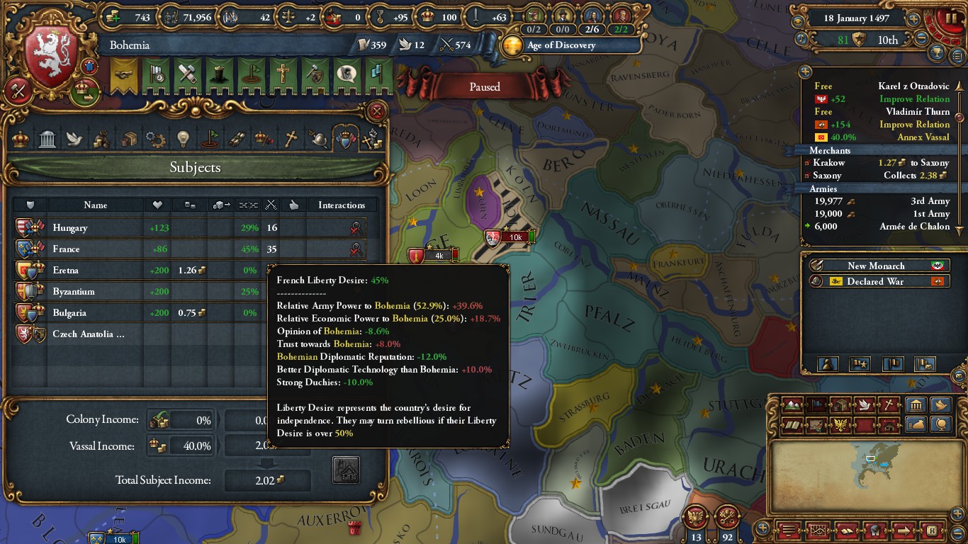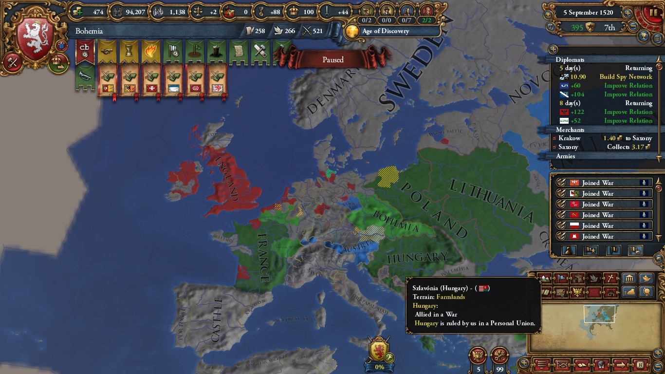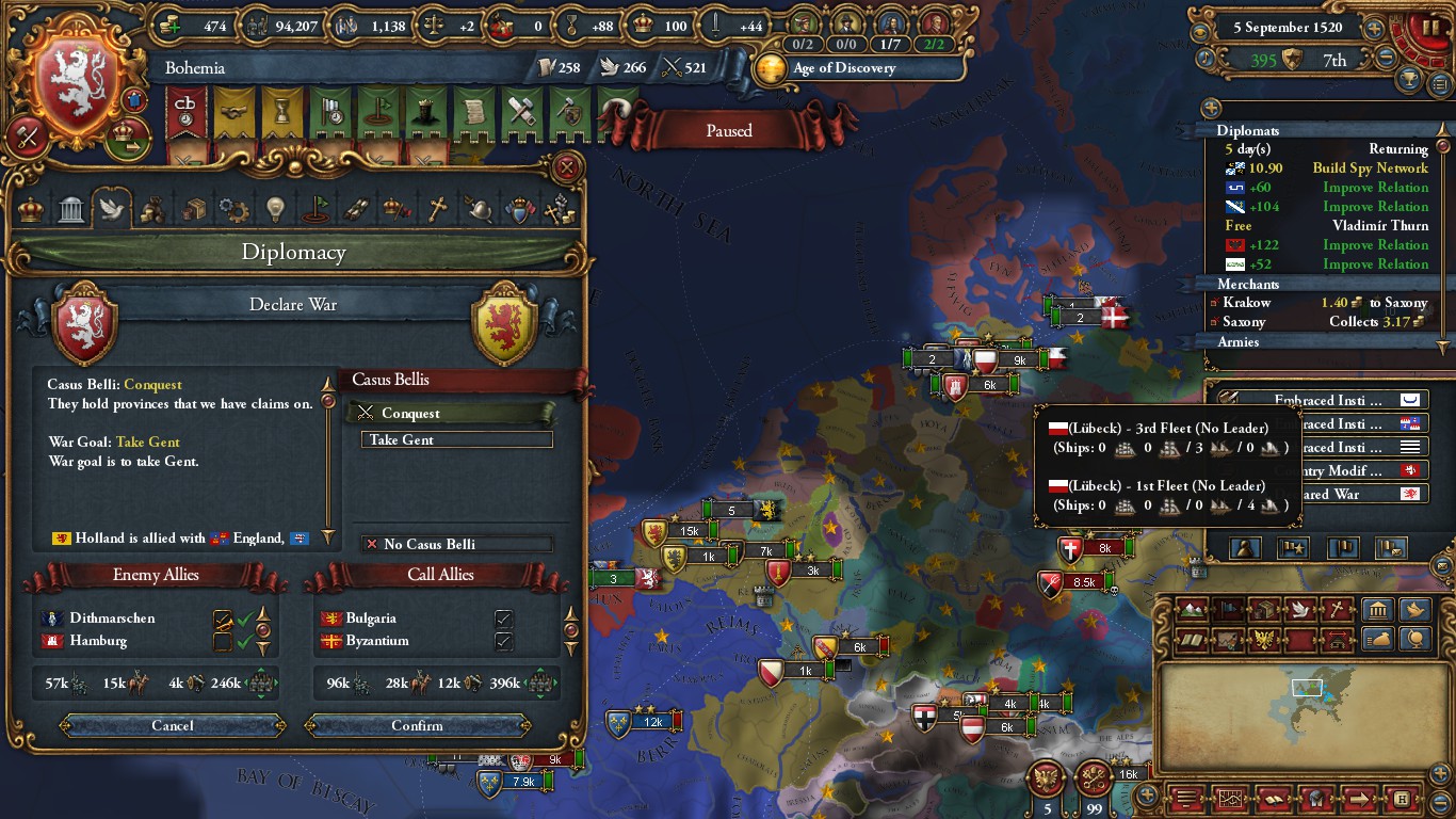 フィレンツェに帝国拡大CBで宣戦したが、途中で100%スコアを超え、編入失敗。