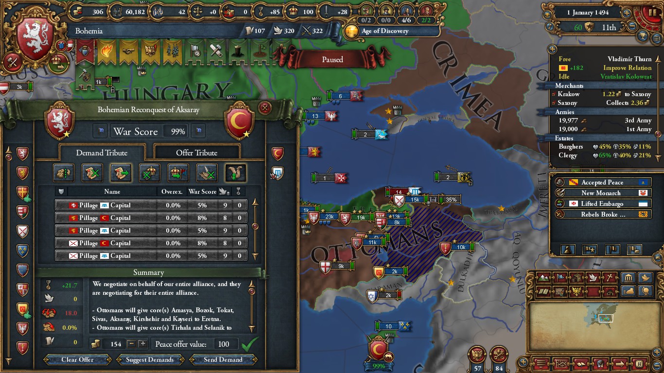 停戦も明けたので、オスマンに再度宣戦し、属国のコアを返還してもらおう。