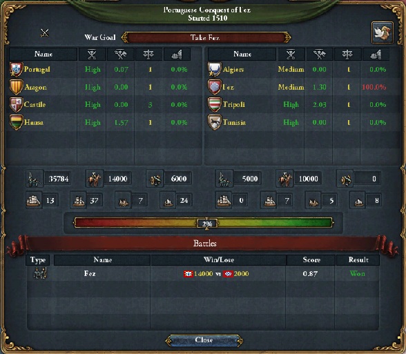 フェズ戦(アルジェ戦)も作業でした。フェズ併合といつもの賠償金交易力移譲のセットで和平。